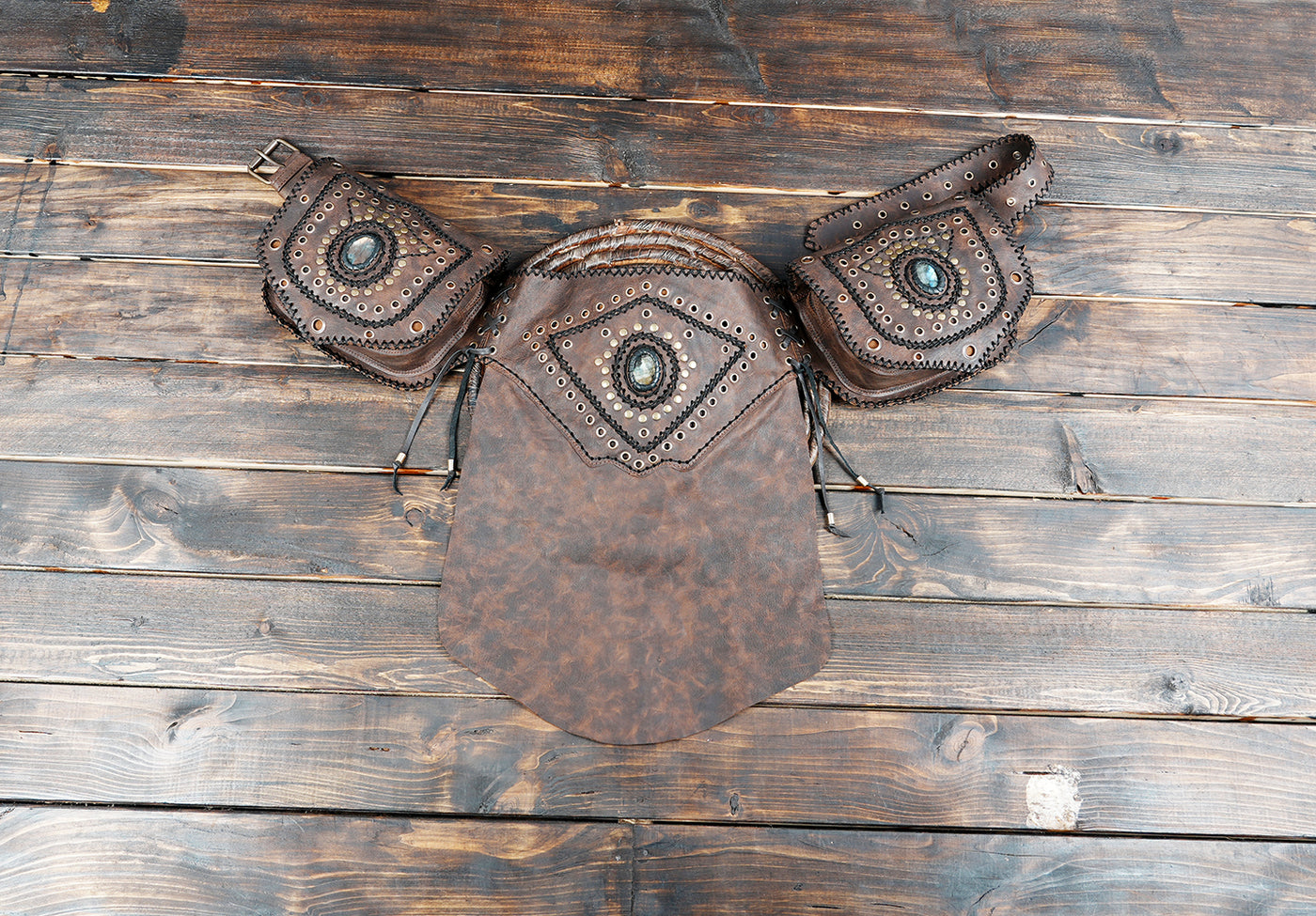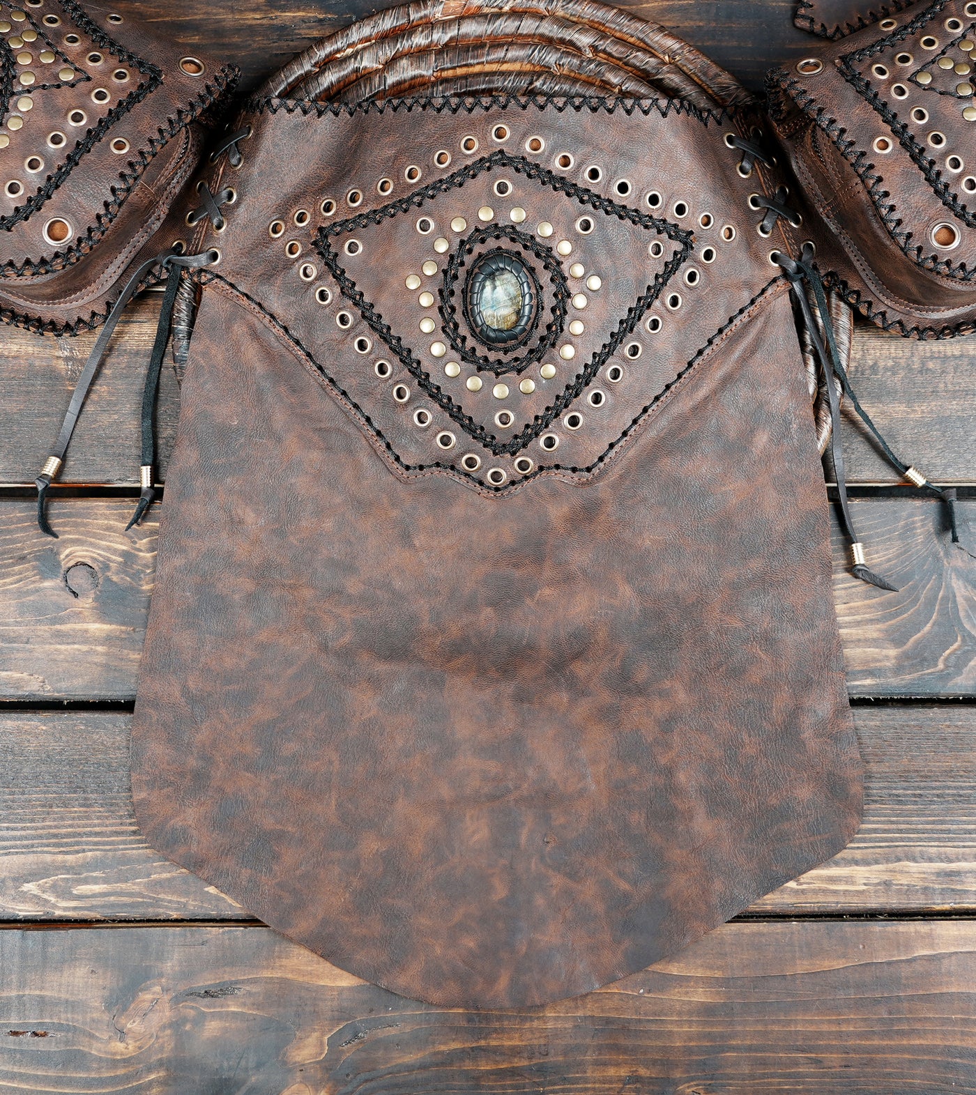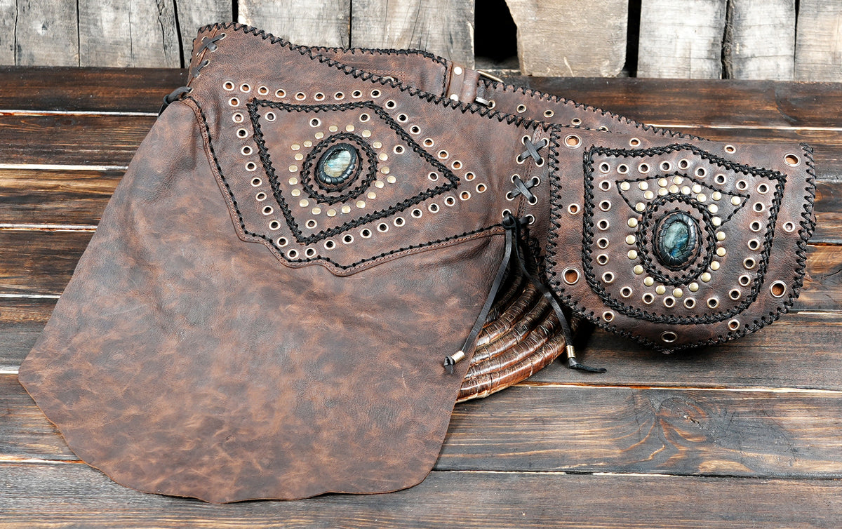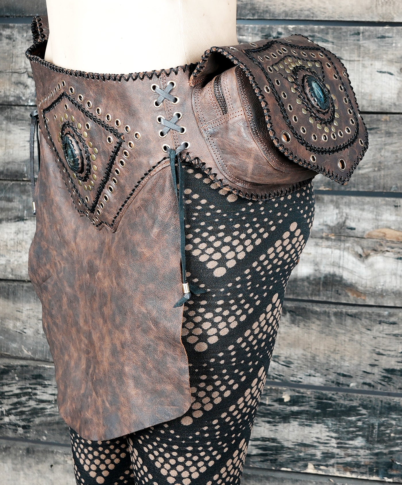 Handmade Leather Skirt with Utility Pouches – Festival, Cosplay & Burning Man Outfit (LT-AB-SKT-6016) - Dark Brown / S = 28 to 32