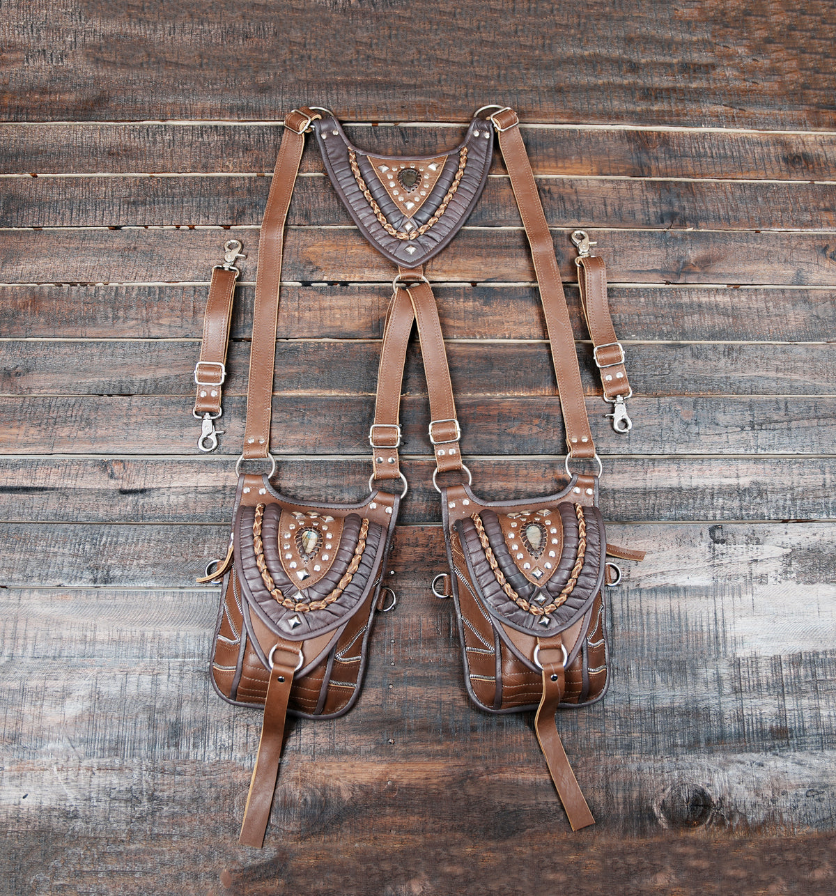 Decorative Braided & Studded Detailing – artisanal craftsmanship with braided leather accents and metal studs for a bold statement.
