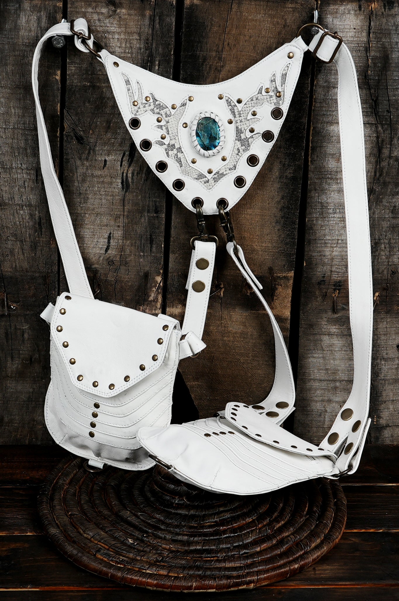Steampunk Cream Leather Harness (LT-AB-HLS-6091) - Off White / Free Sized