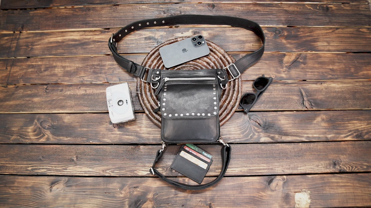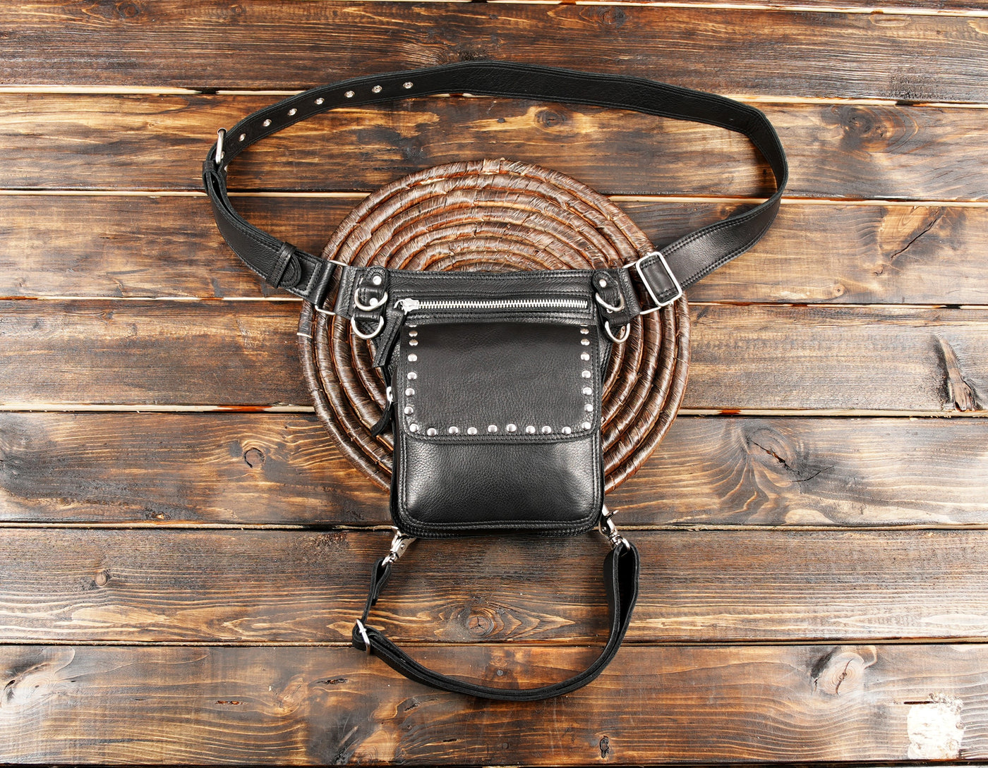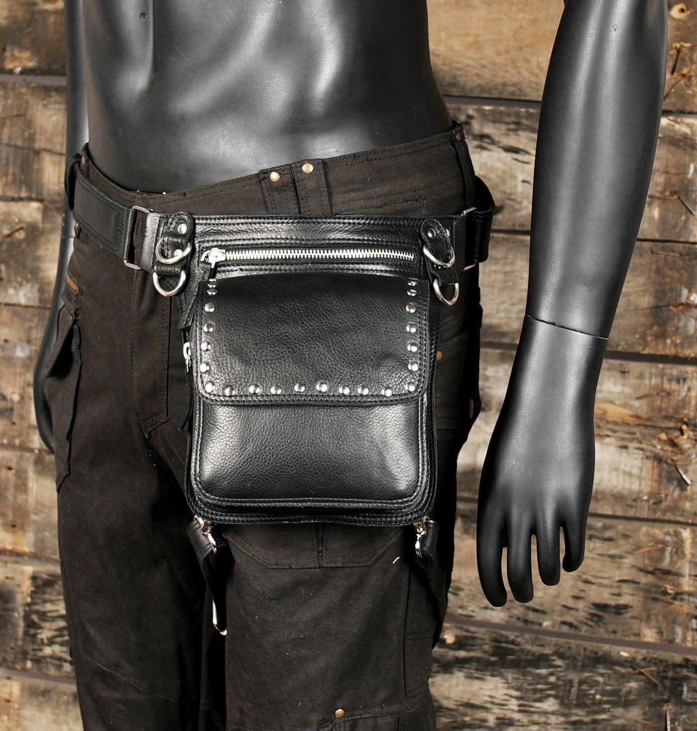 Handmade Black Leather Waist Thigh Belt – Adjustable Festival & Travel Utility Bag (LT-NS-WBTS-6013) - Black / S = 28 to 32