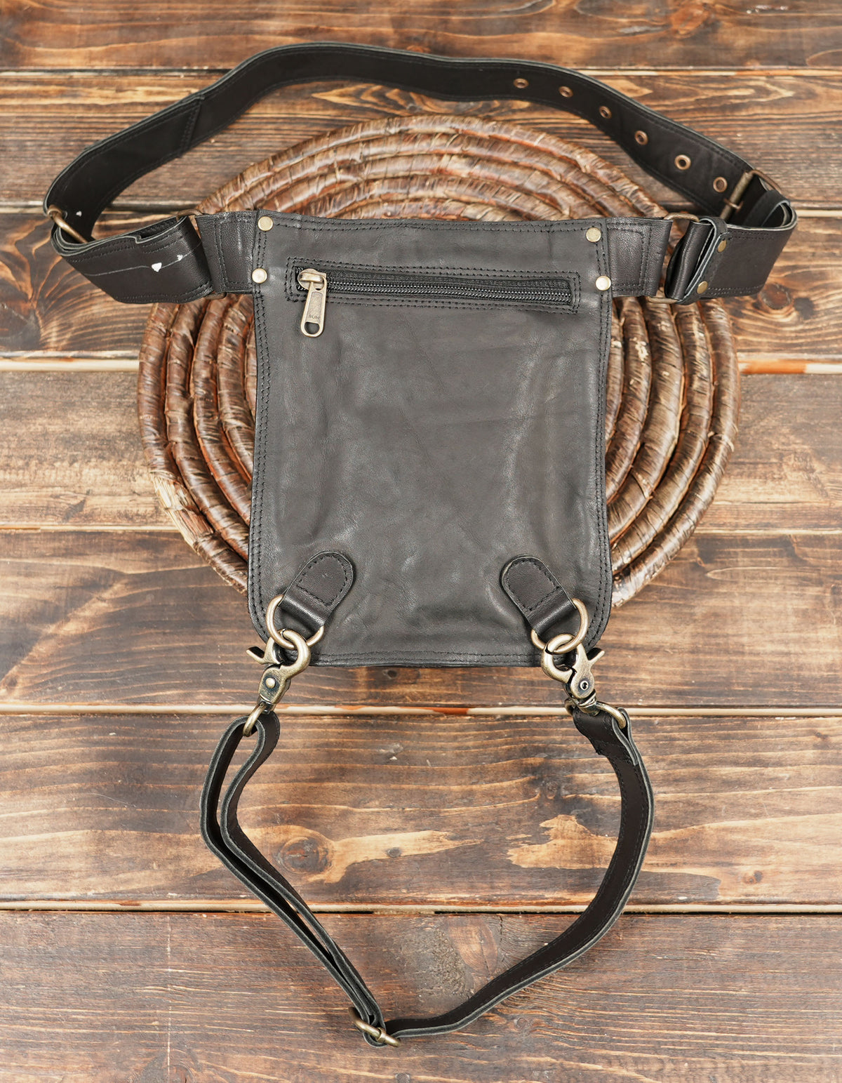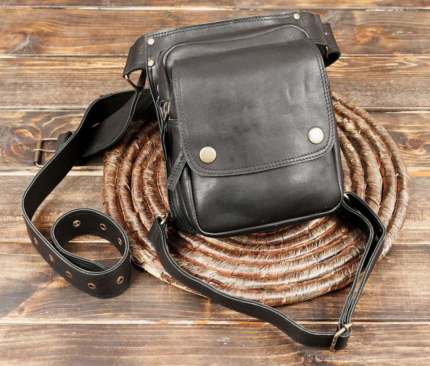 Handmade Leather Thigh Belt Festival Utility Waist Bag (LT/AB/WBTS/6017) - Black / S - 28 TO 32