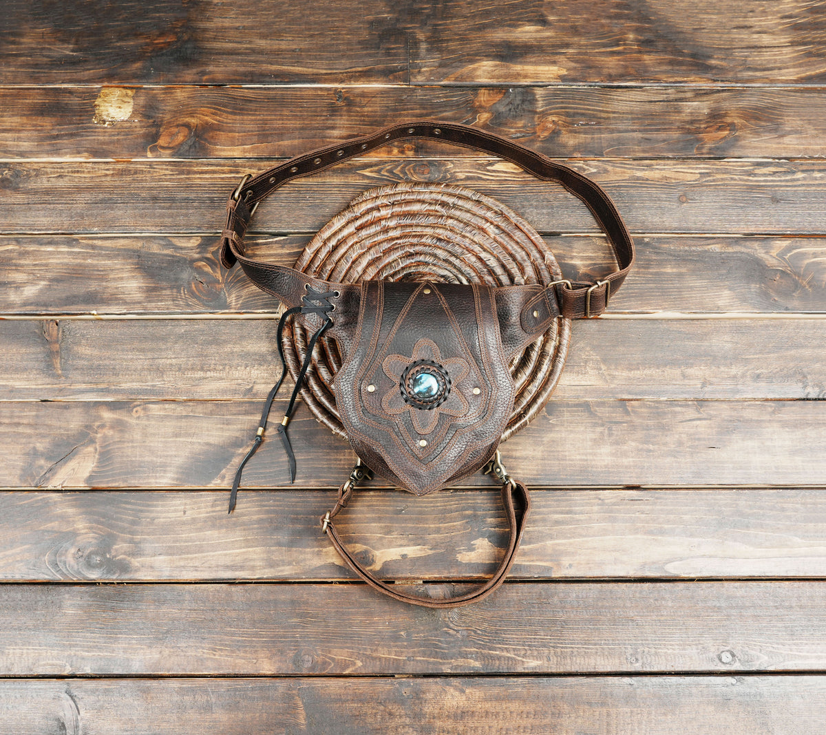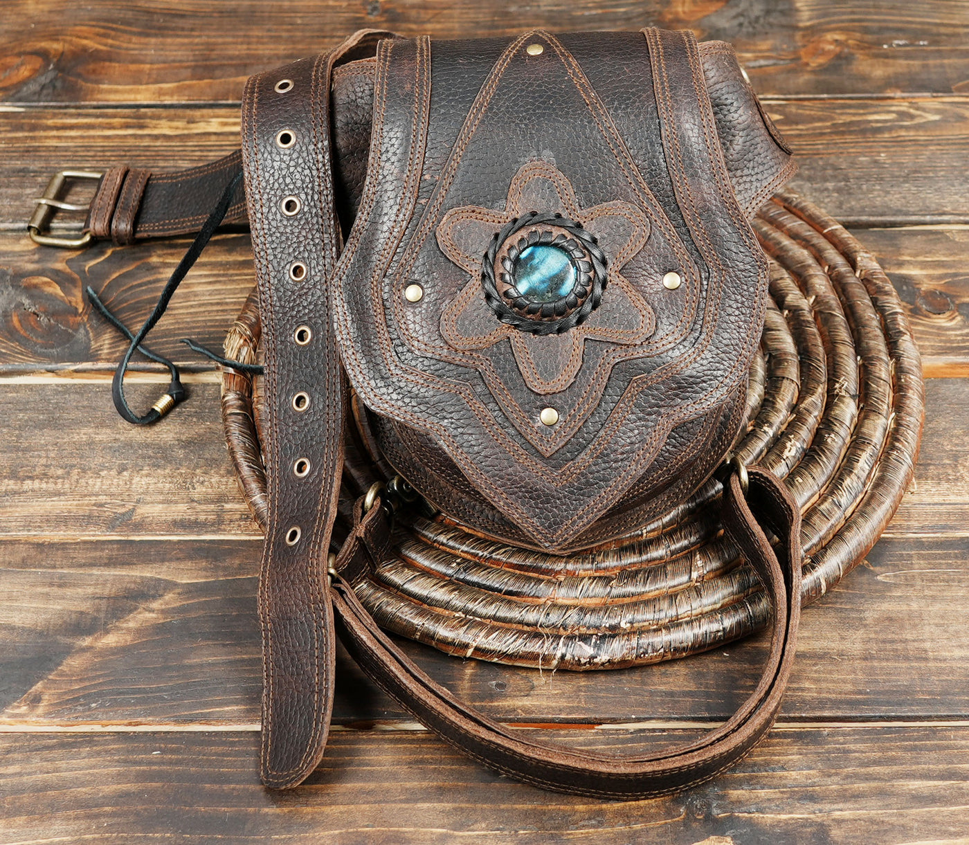 Handmade Leather Thigh Holster Belt with Gemstone (LT-AB-WBTS-6018) - Dark Brown / S - 28 TO 32