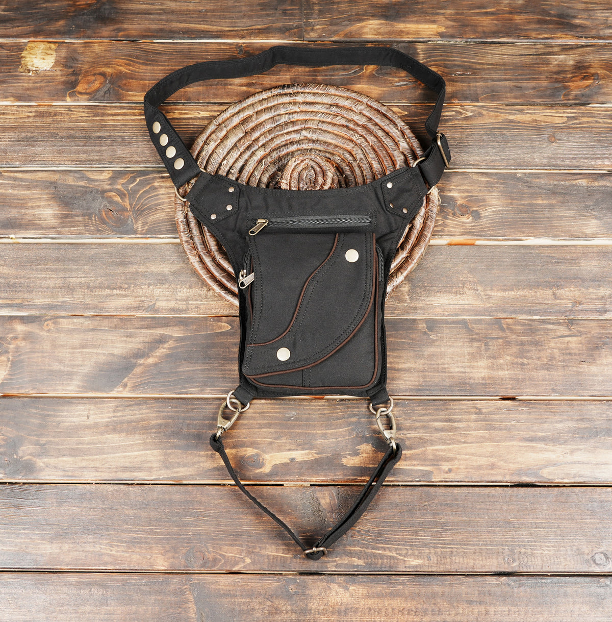 Black Cotton Waist Thigh Belt – Unisex Cosplay & Festival Bag (CTN-AB-WBTS-1015) - Black / S = 28 to 32