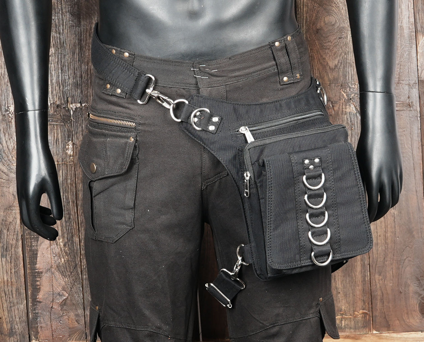 Handmade Cotton Thigh Belt – Black Waist and Thigh Bag (CTN-NS-WBTS-1002) - Black / S = 28 to 32