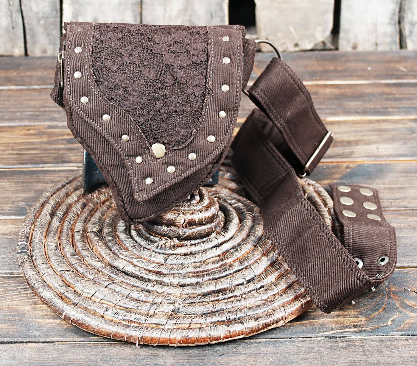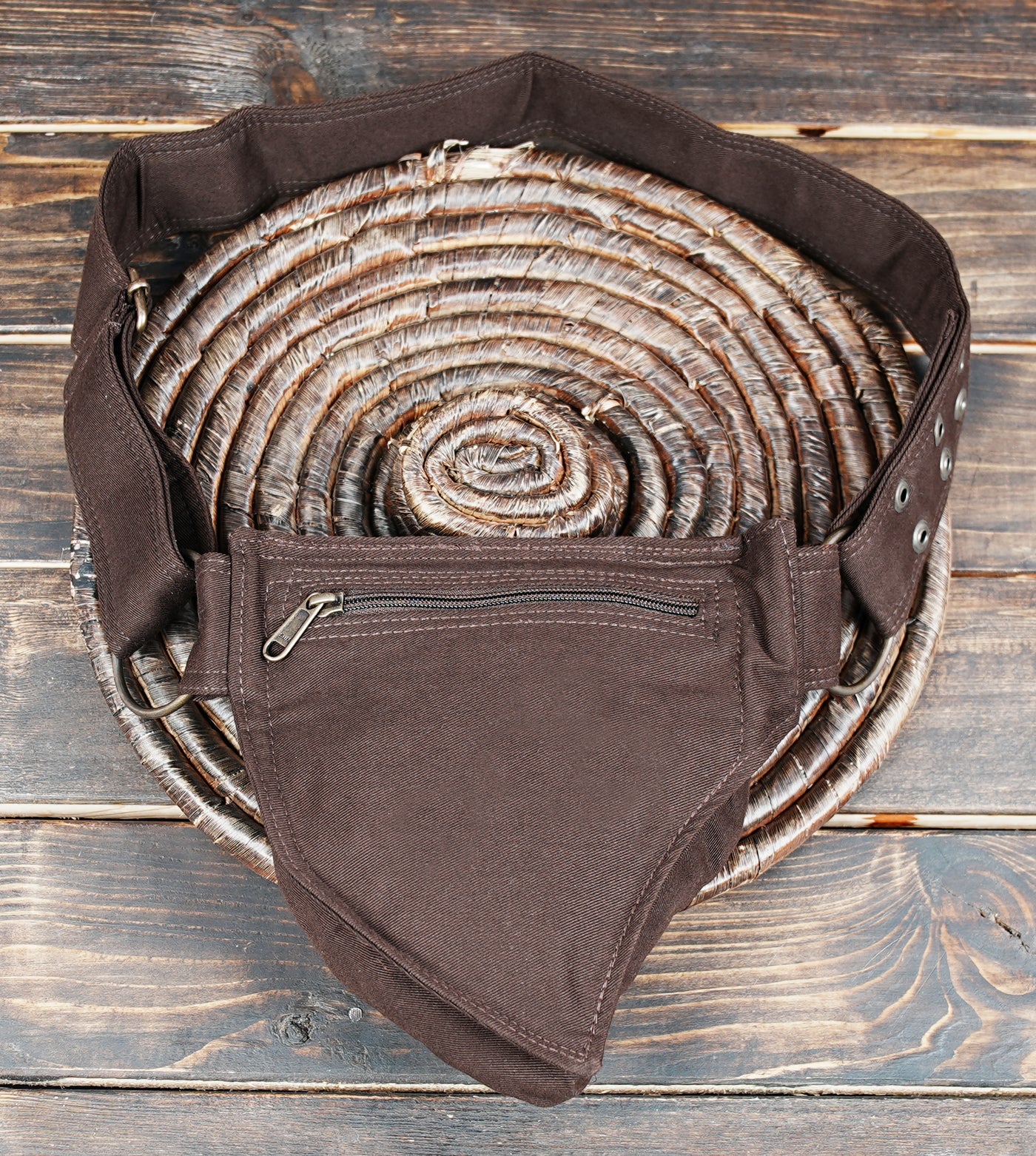 Handmade Cotton Waist Belt – Adjustable Festival & Travel Utility Pouch (CTN-AB-WB-1021) - Black / S - 28 TO 32