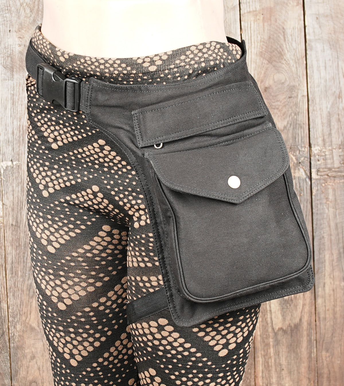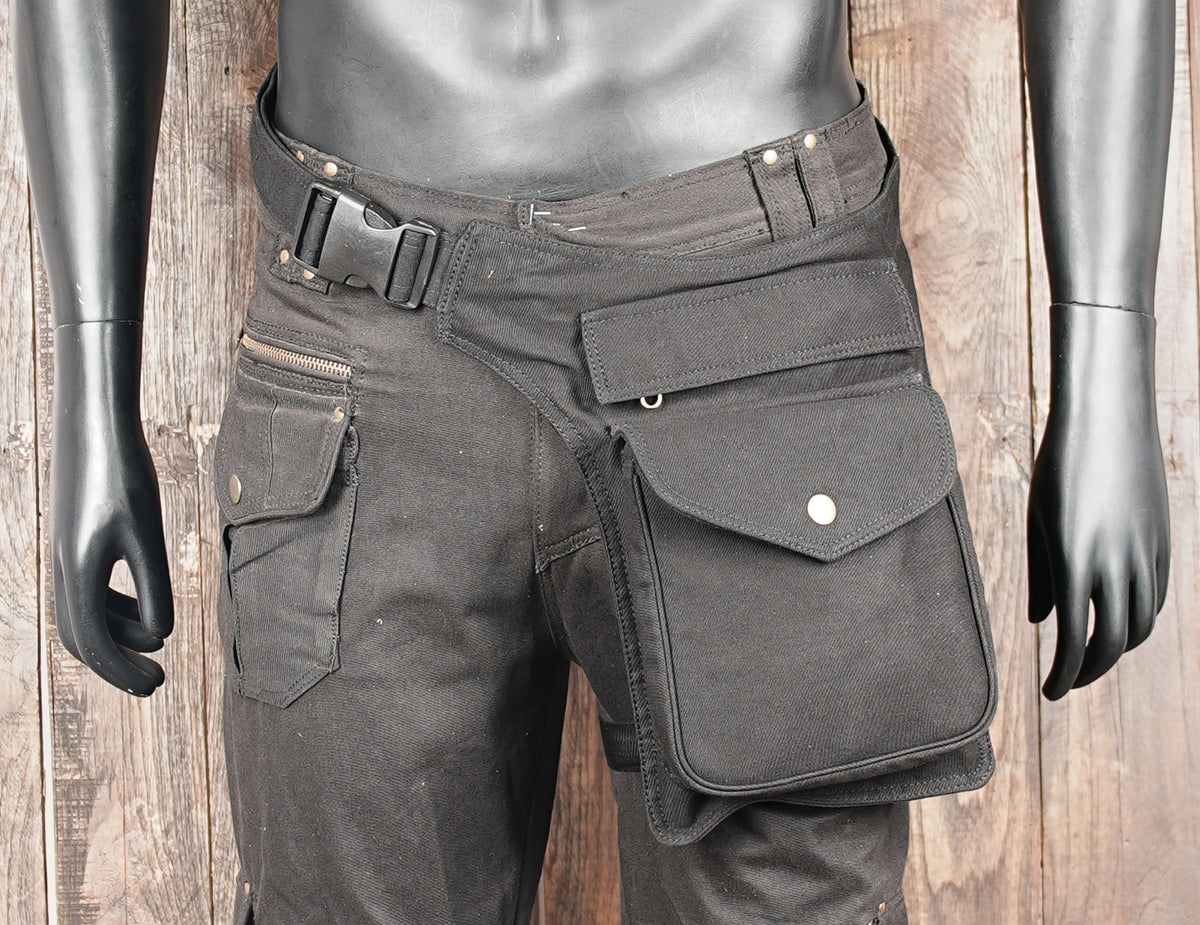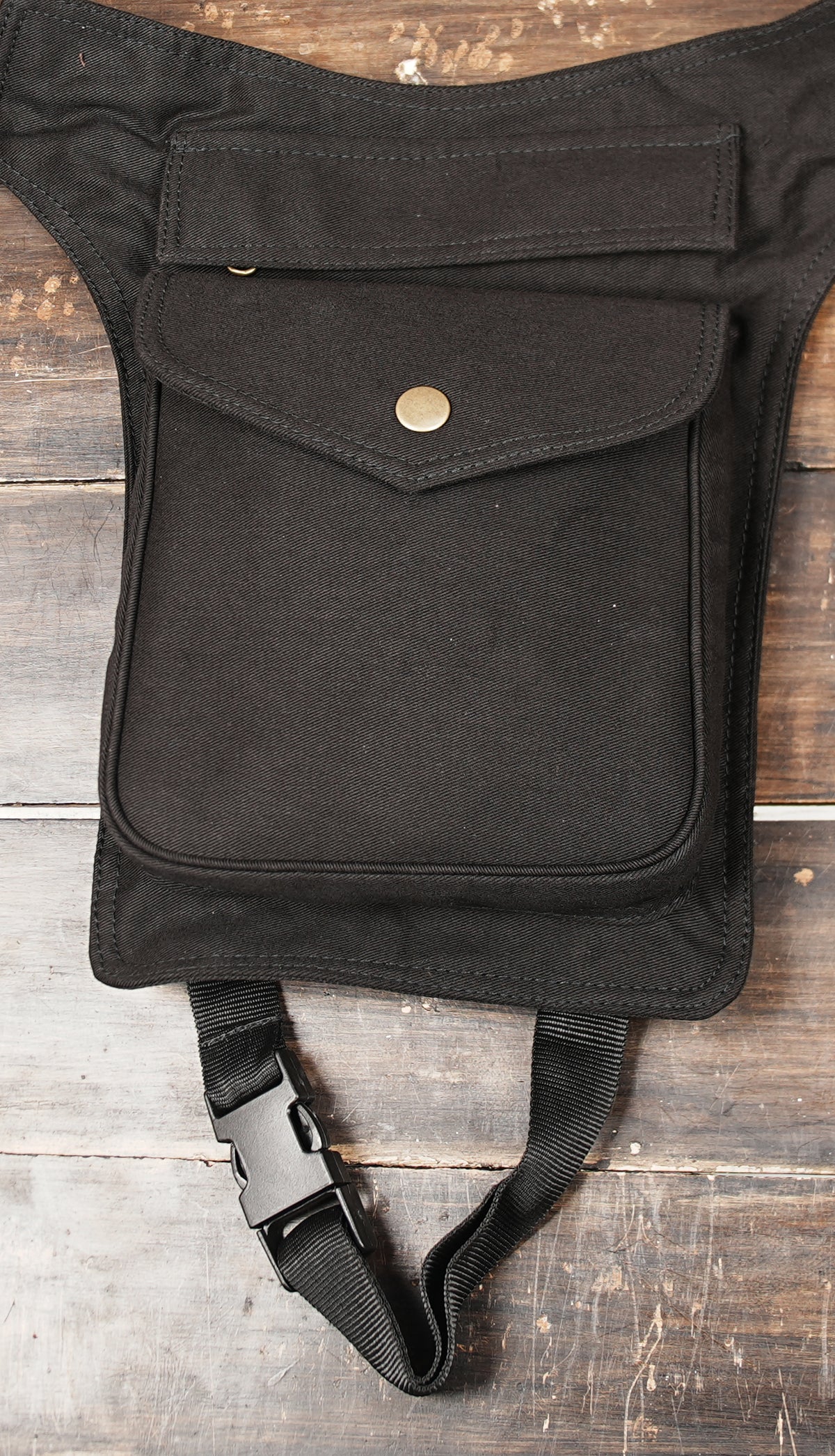 Handmade Cotton Waist Belt with Utility Pouch – Festival & Travel Style (CTN/AB/WBTS/1006) - Black / S = 28 to 32