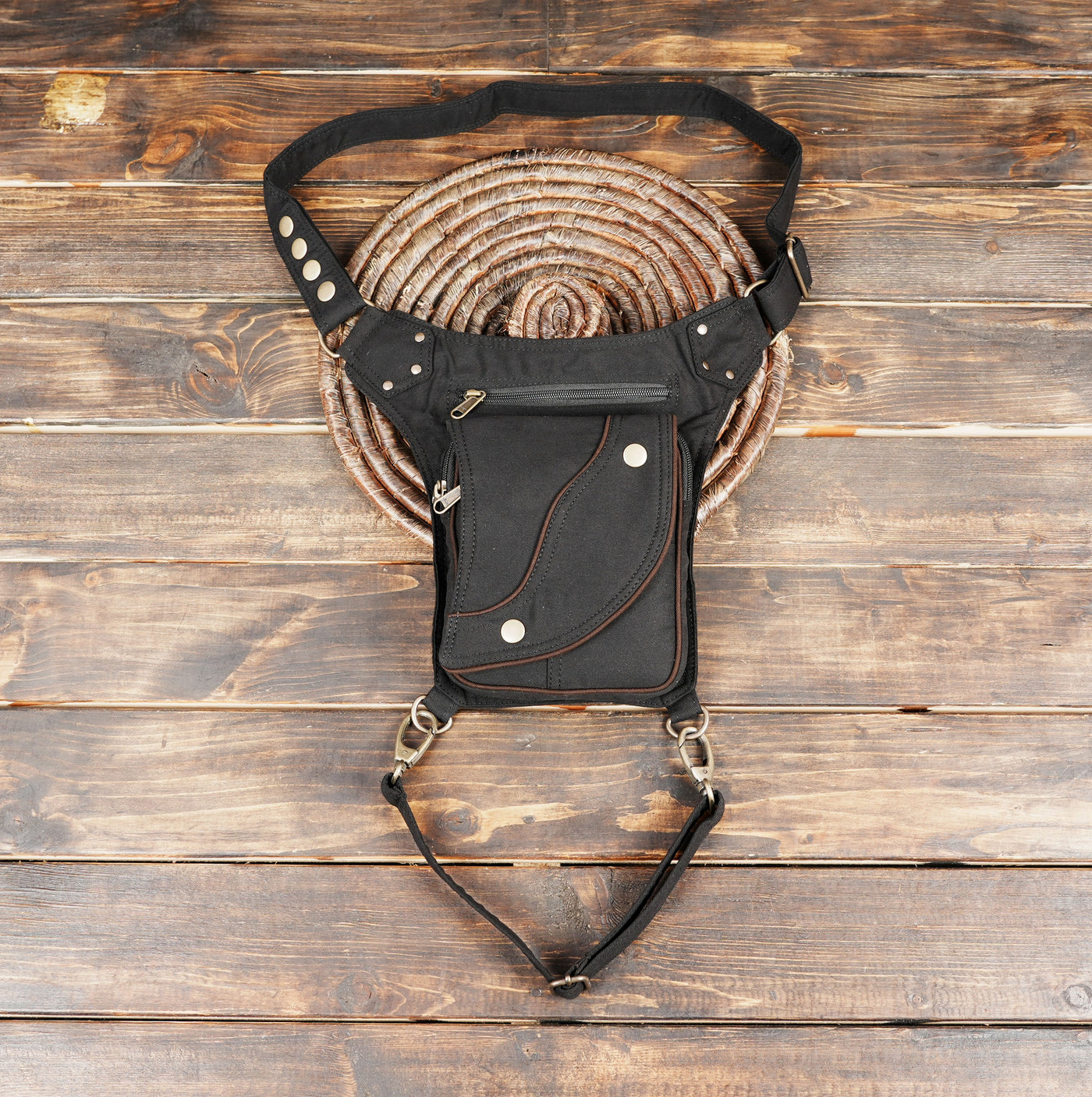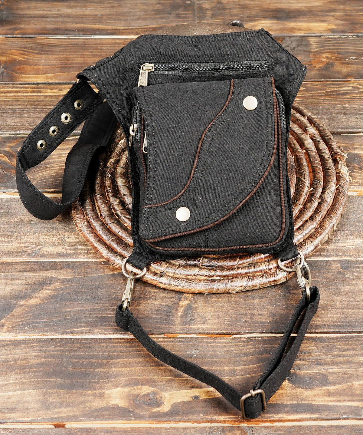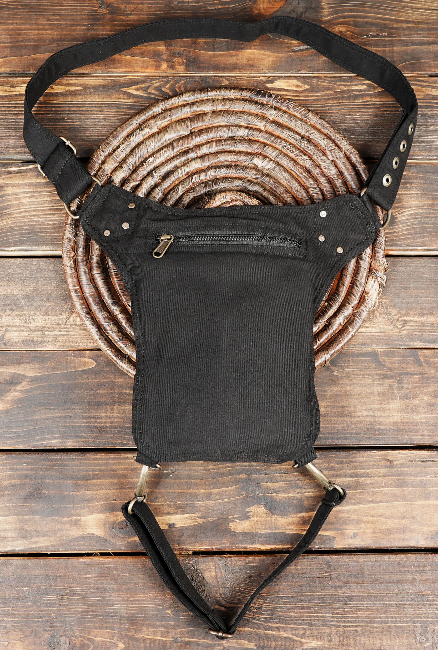 Handmade Cotton Waist Thigh Belt – Adjustable Festival & Travel Utility Bag (CTN-AB-WBTS-1015) - Black / S = 28 to 32