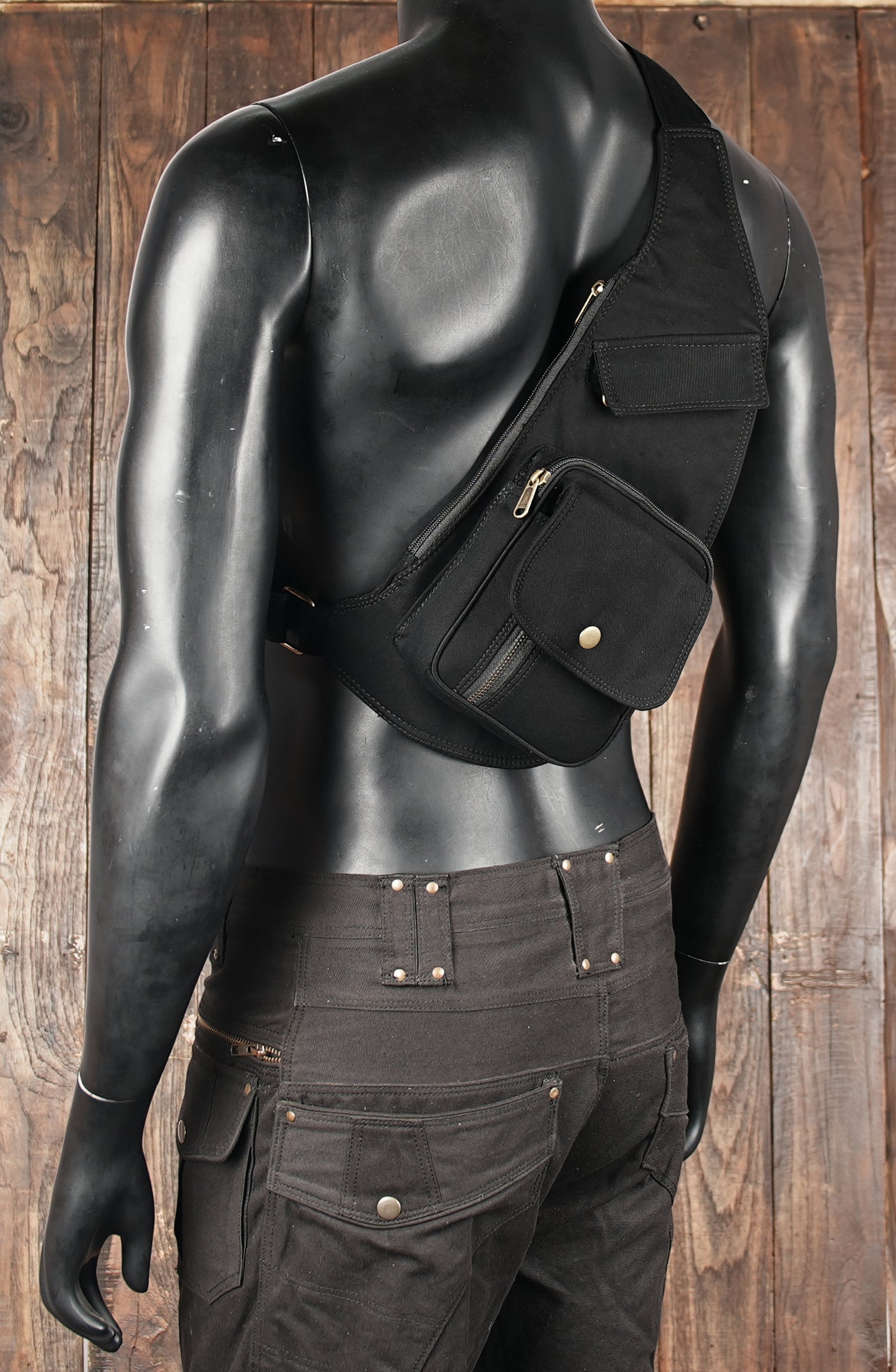 Unisex Cotton Canvas Shoulder Sling Bag – Crossbody Travel & Everyday Chest Bag (CTN-AB-SB-1002) - Black / Free Size