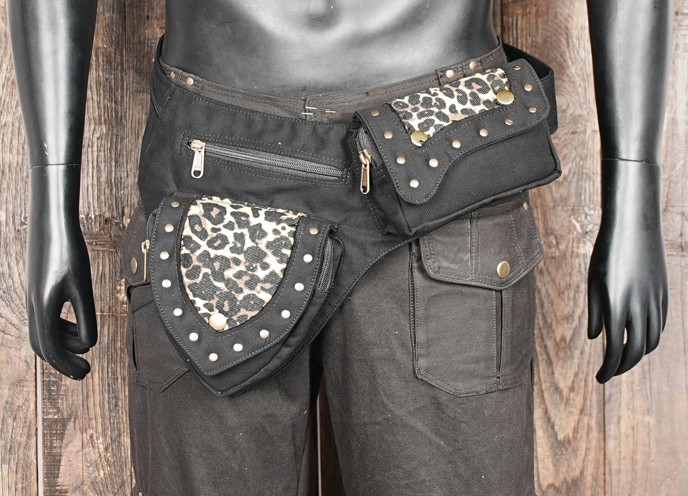 Unisex Cotton Waist Bag – Handmade Leopard Accent Belt with Zipper Pockets (CTN-AB-WB-1050)