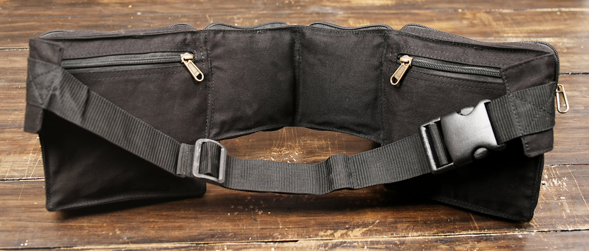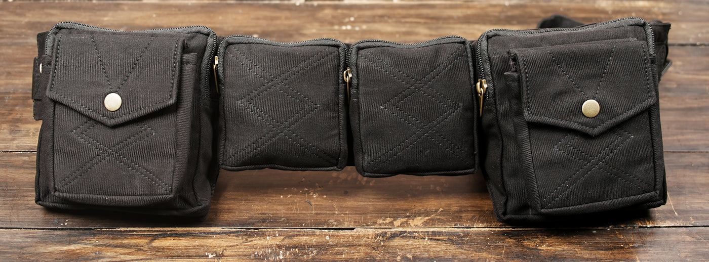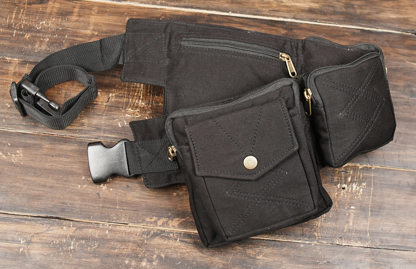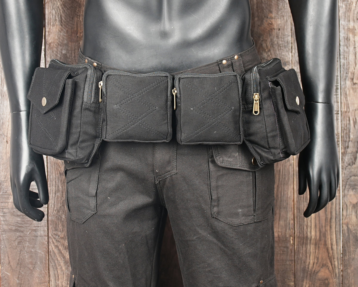 Unisex Cotton Waist Pack – Festival & Cosplay Utility Belt (CTN-AB-WB-1032) - Black / S = 28 to 32