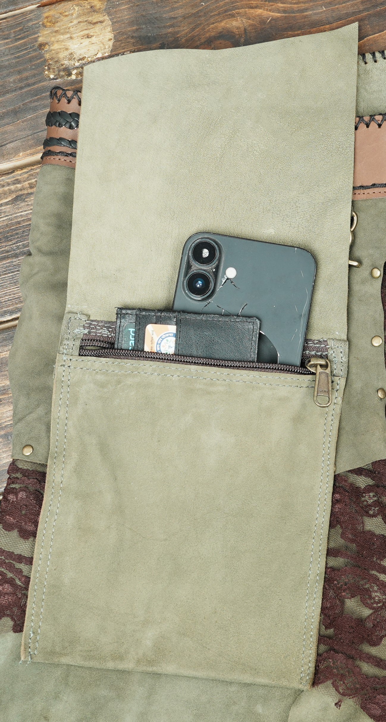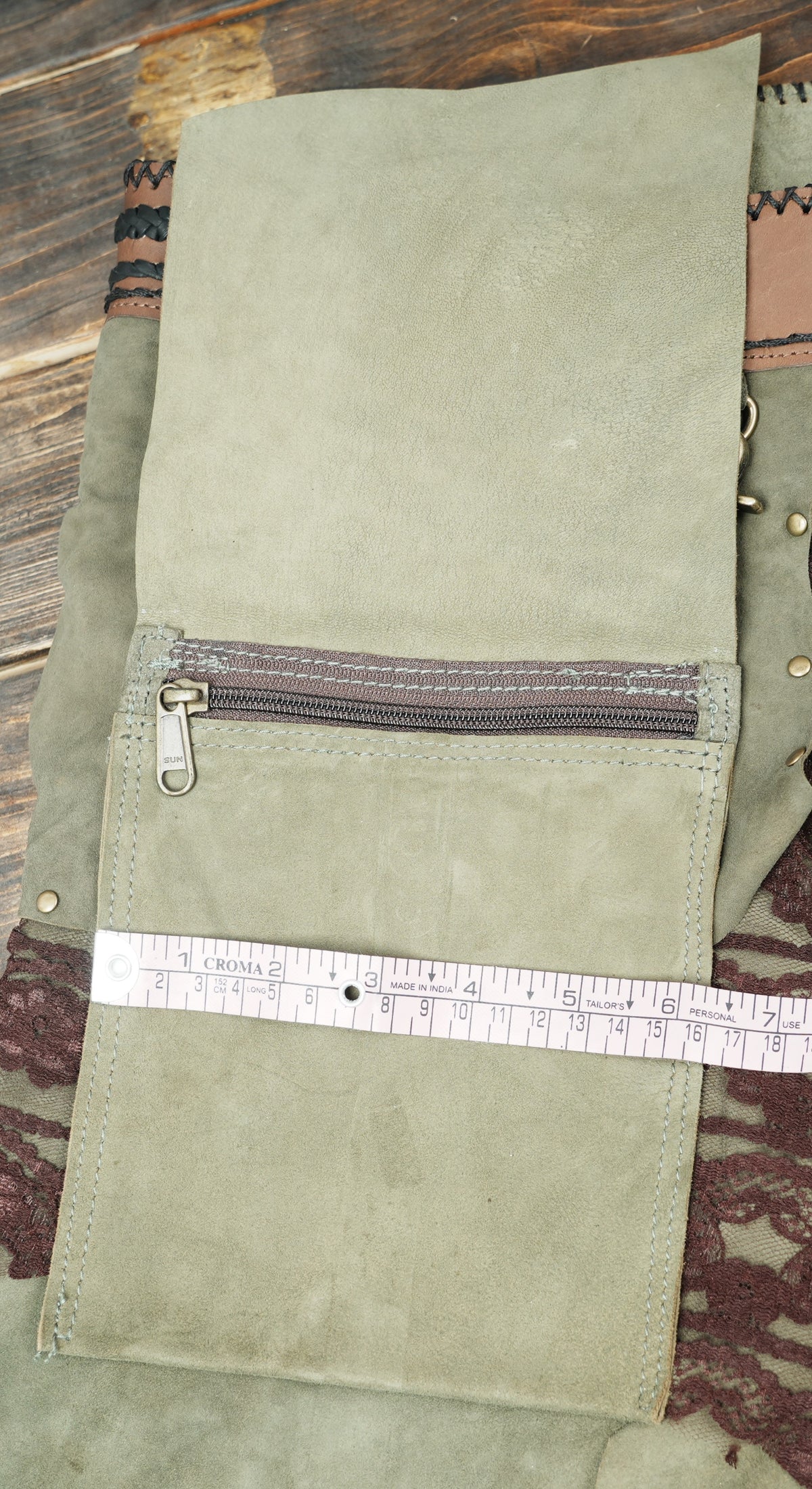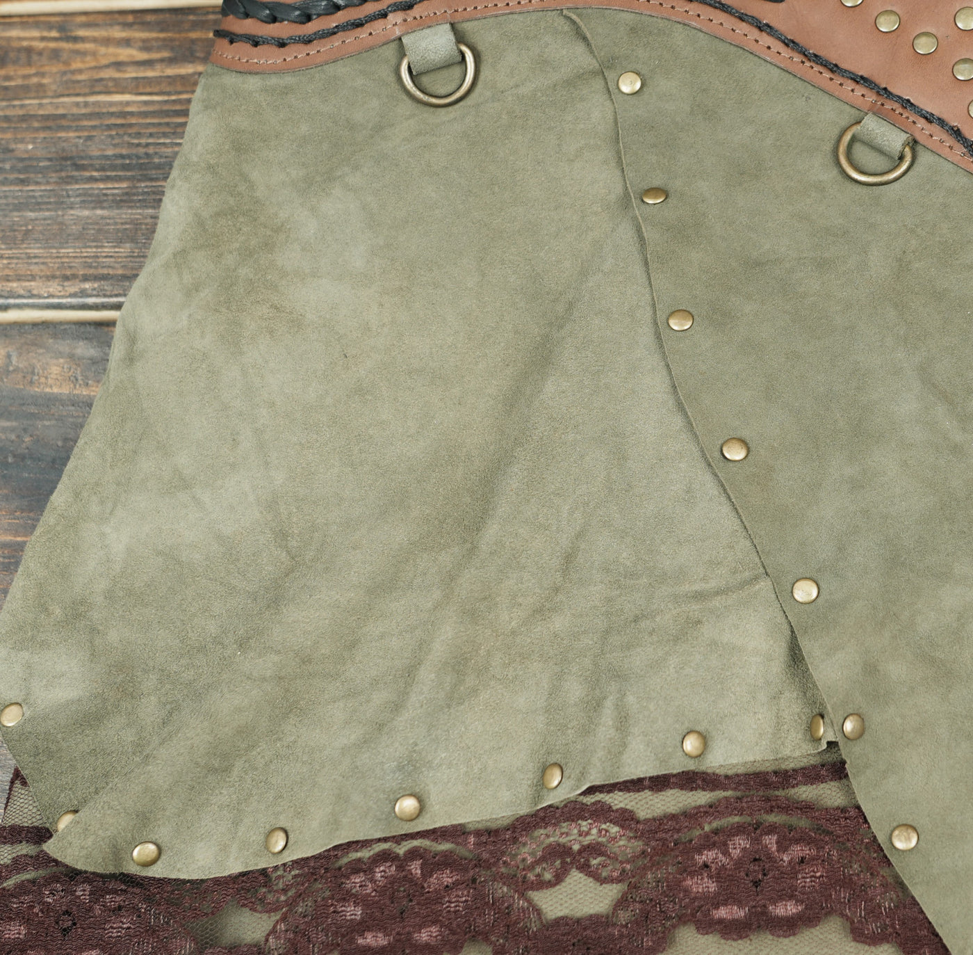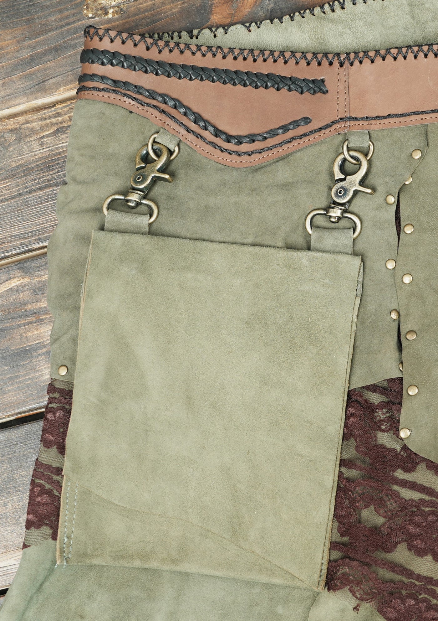Handcrafted Suede Leather Skirt with Lace and Detachable Pouch || Fantasy Cosplay Leather Skirt with Gemstone Waistband (LT/AB/SKT/6011) - Green / S = 28 to 32