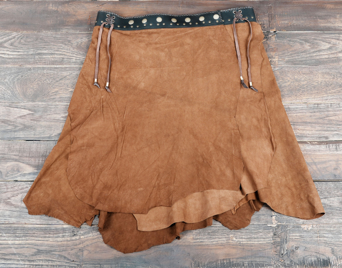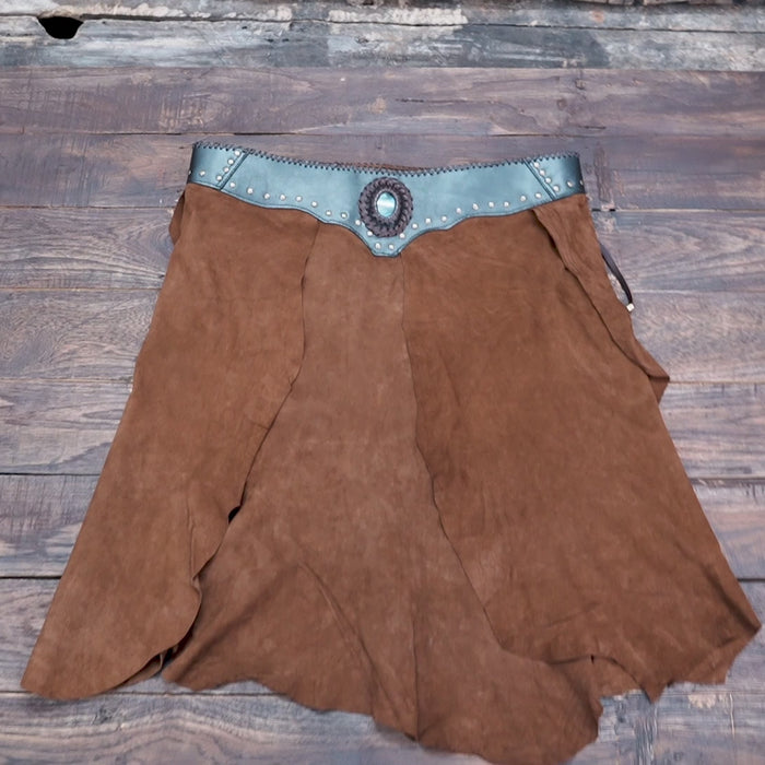 Handmade Brown Leather Skirt with Gemstone Waist – Festival & Boho Fashion (LT-AB-SKT-6023) - Light Brown / S = 28 to 32