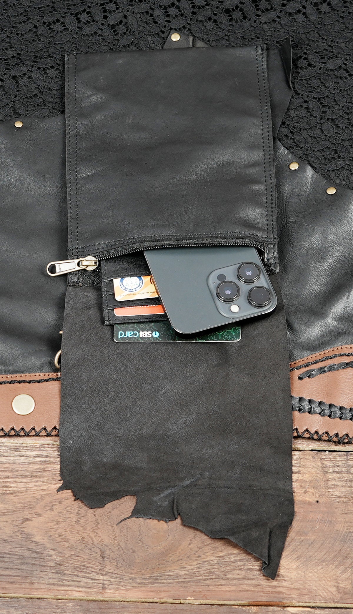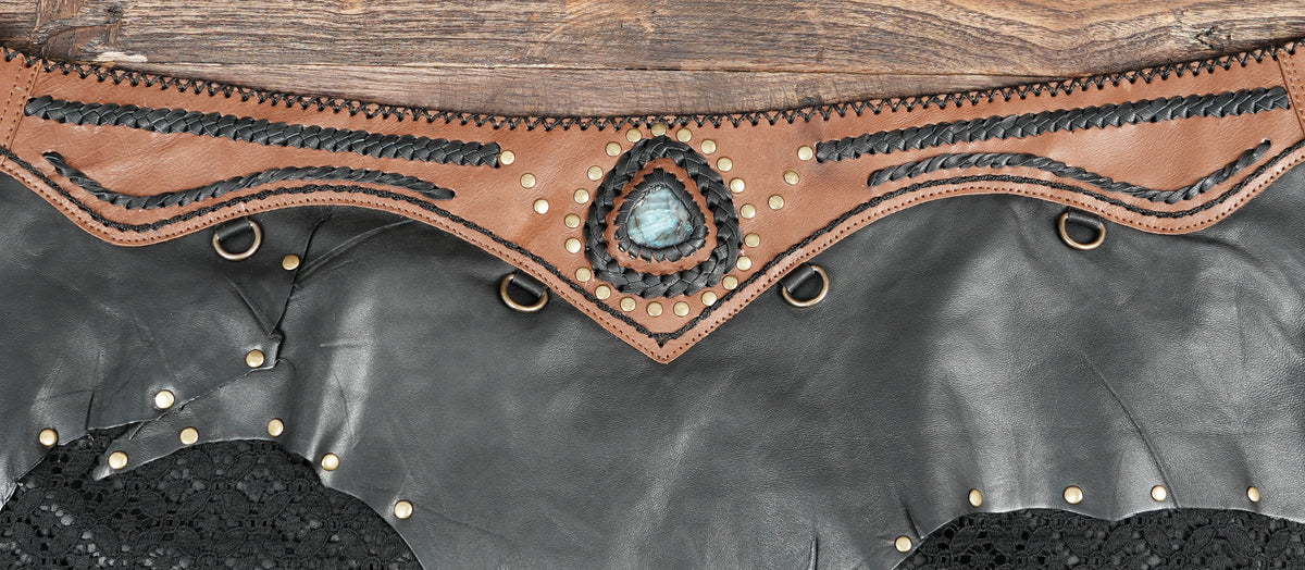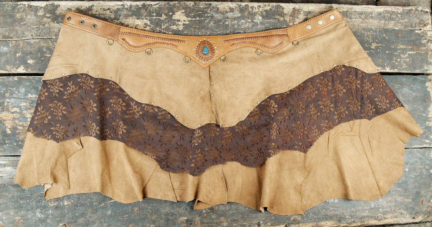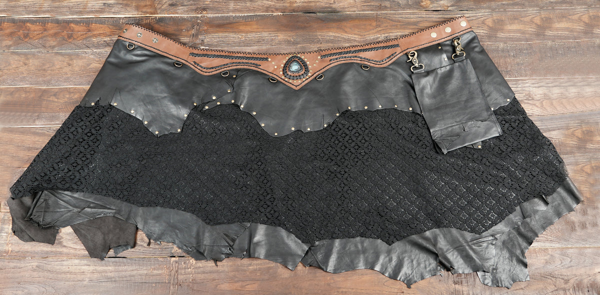 Handmade Leather & Lace Skirt – Gothic, Boho & Festival Fashion (LT-AB-SKT-6004) - Black / S = 28 to 32