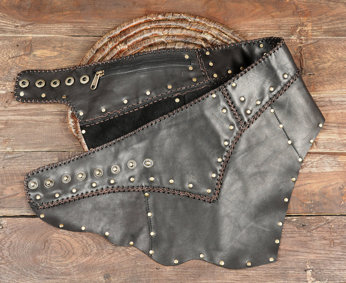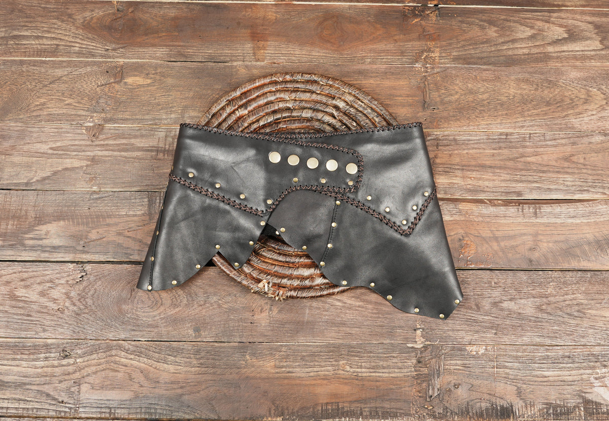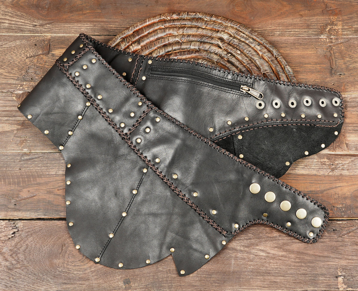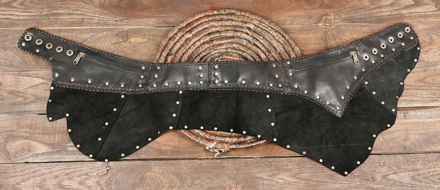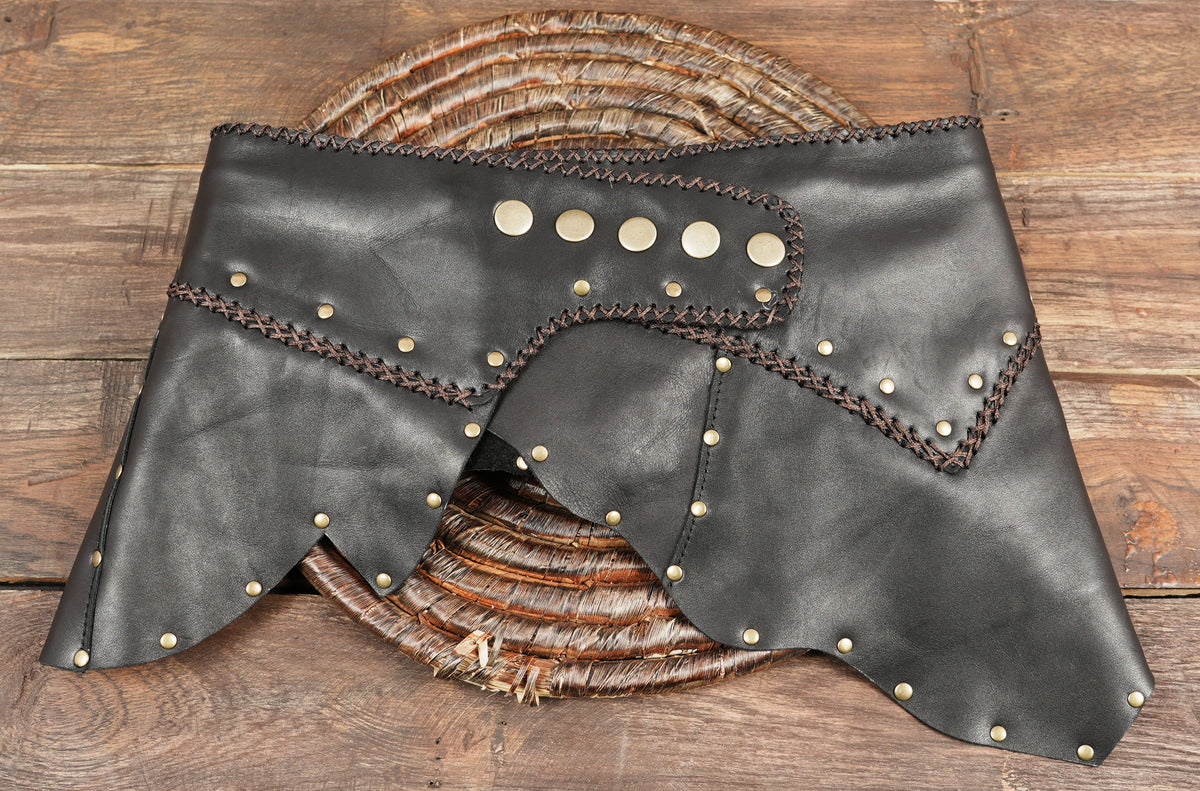 Unique Medieval & Festival Style – Features scalloped edges, rivet accents, and hand-stitched detailing for an authentic rustic look.