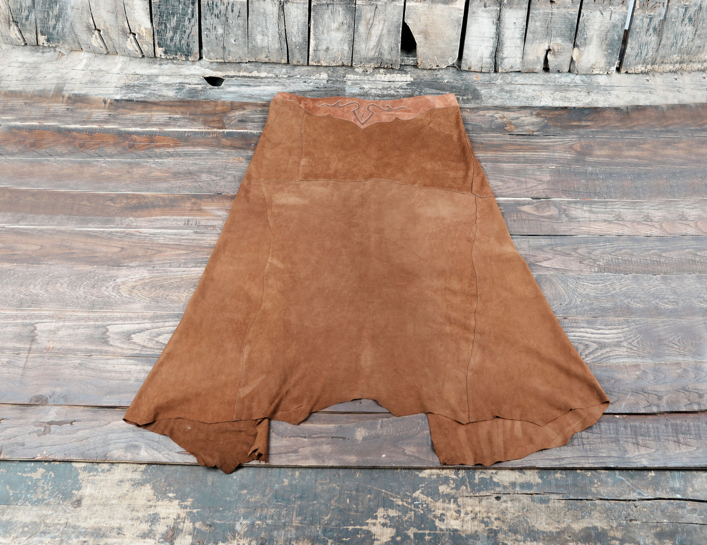 Unique Leather Skirt – Tribal, Burning Man & Alternative Outfit (LT-AB-SKT-6013) - Brown / S = 28 to 32