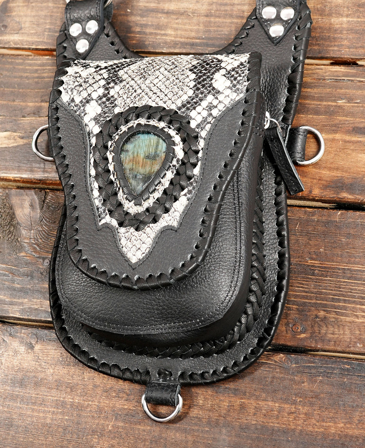 Dual Pocket Leather Holster with Gemstone (LT-NS-HLS-6009) - Black / Free Size