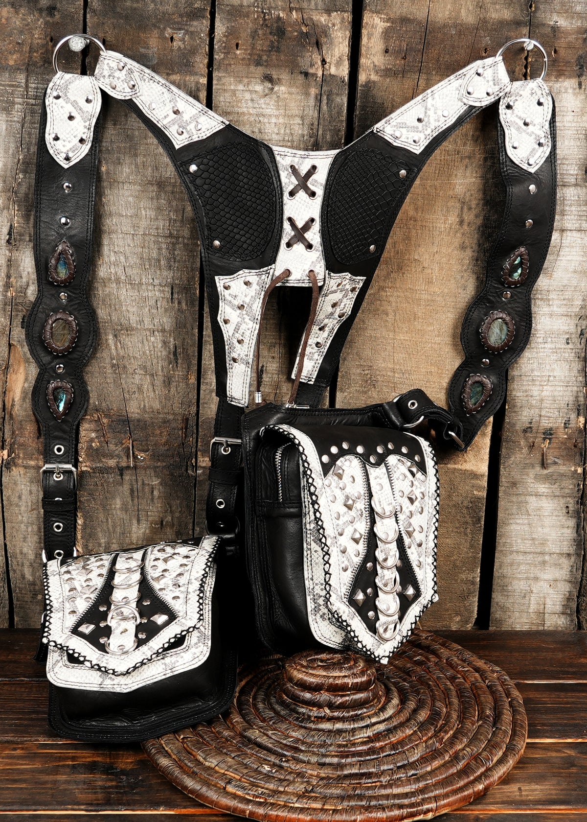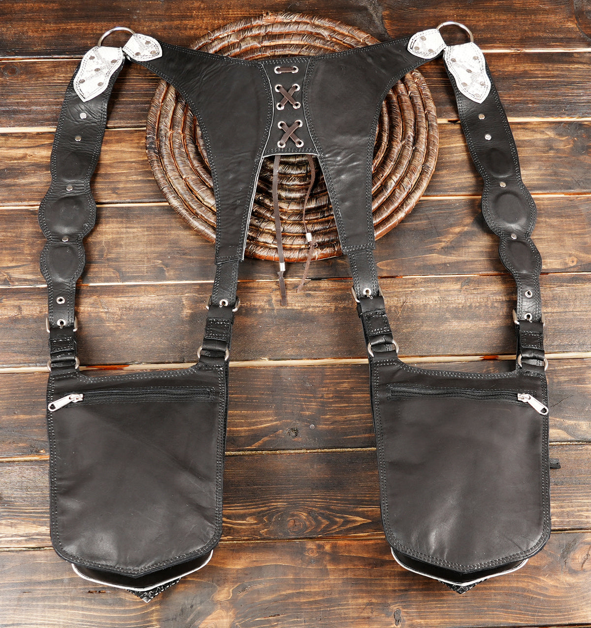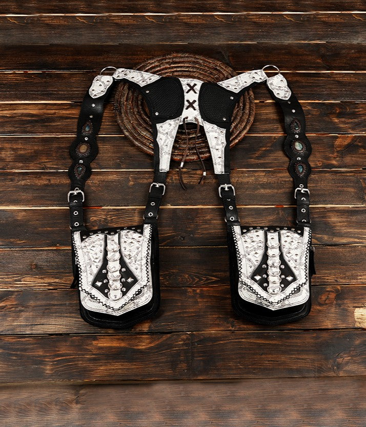 Gothic Steampunk Leather Holster Bag Perfect for Festivals & Cosplay (LT-NS-HLS-6013) - Black / Free Sized / Antic Brass