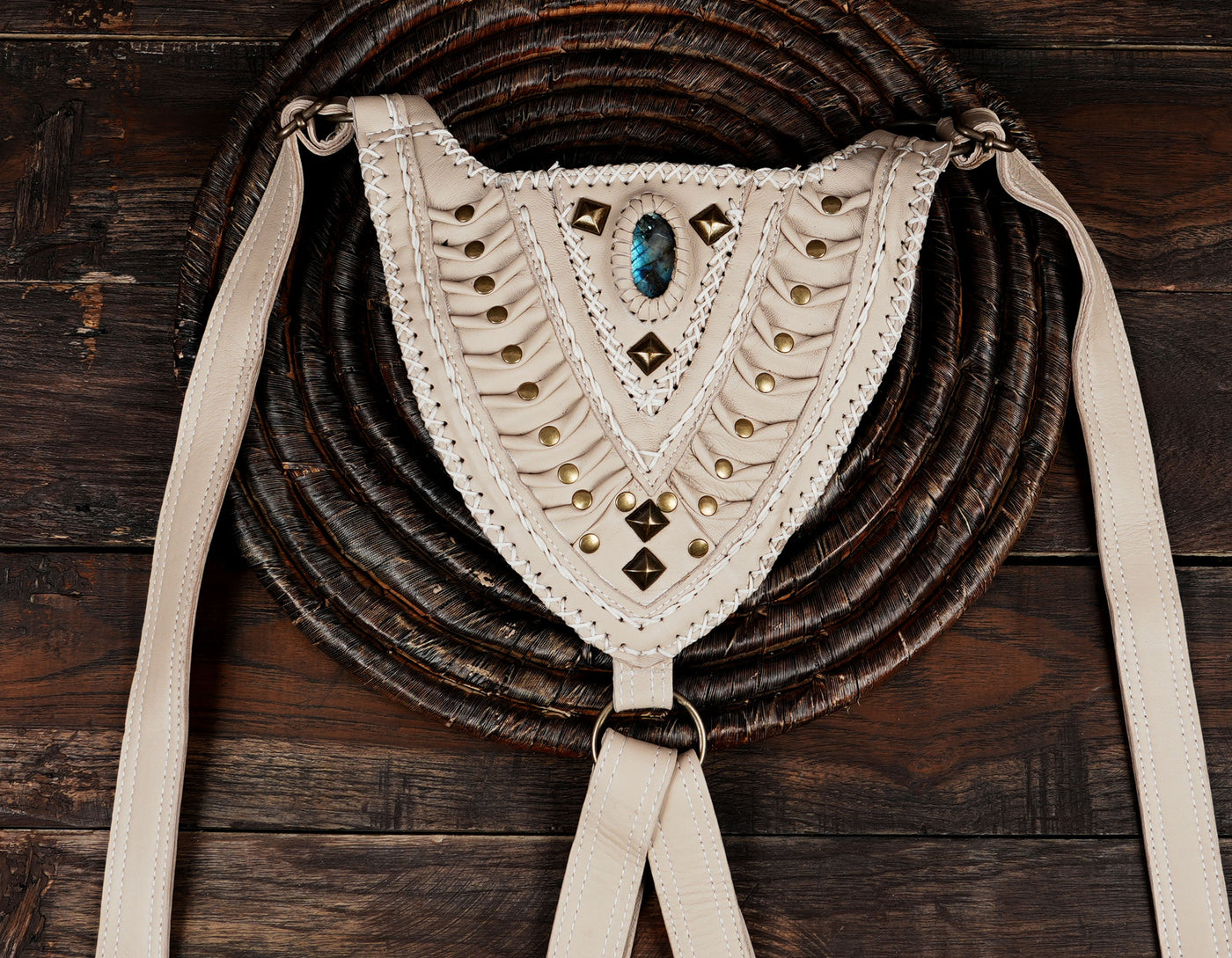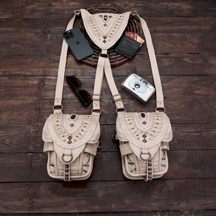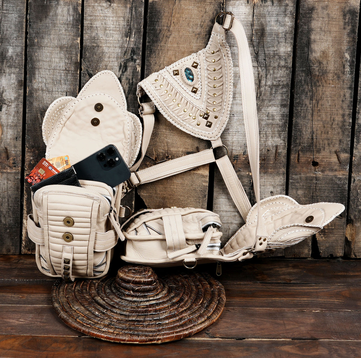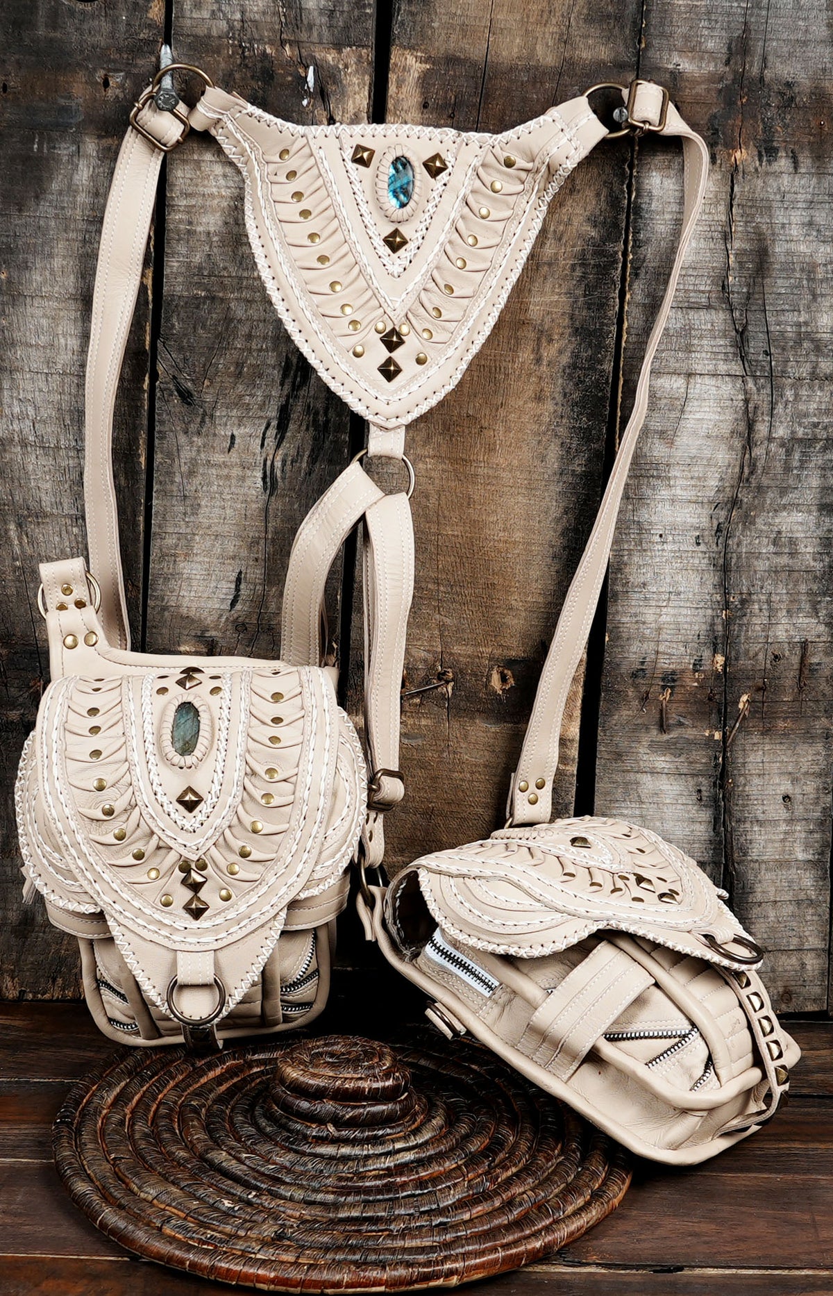 Handmade Genuine Leather Holster with Adjustable Straps || Steampunk Style Leather Holster (LT-AB-HLS-6003) - Extra Care Off-White / Free Size / Antic Brass