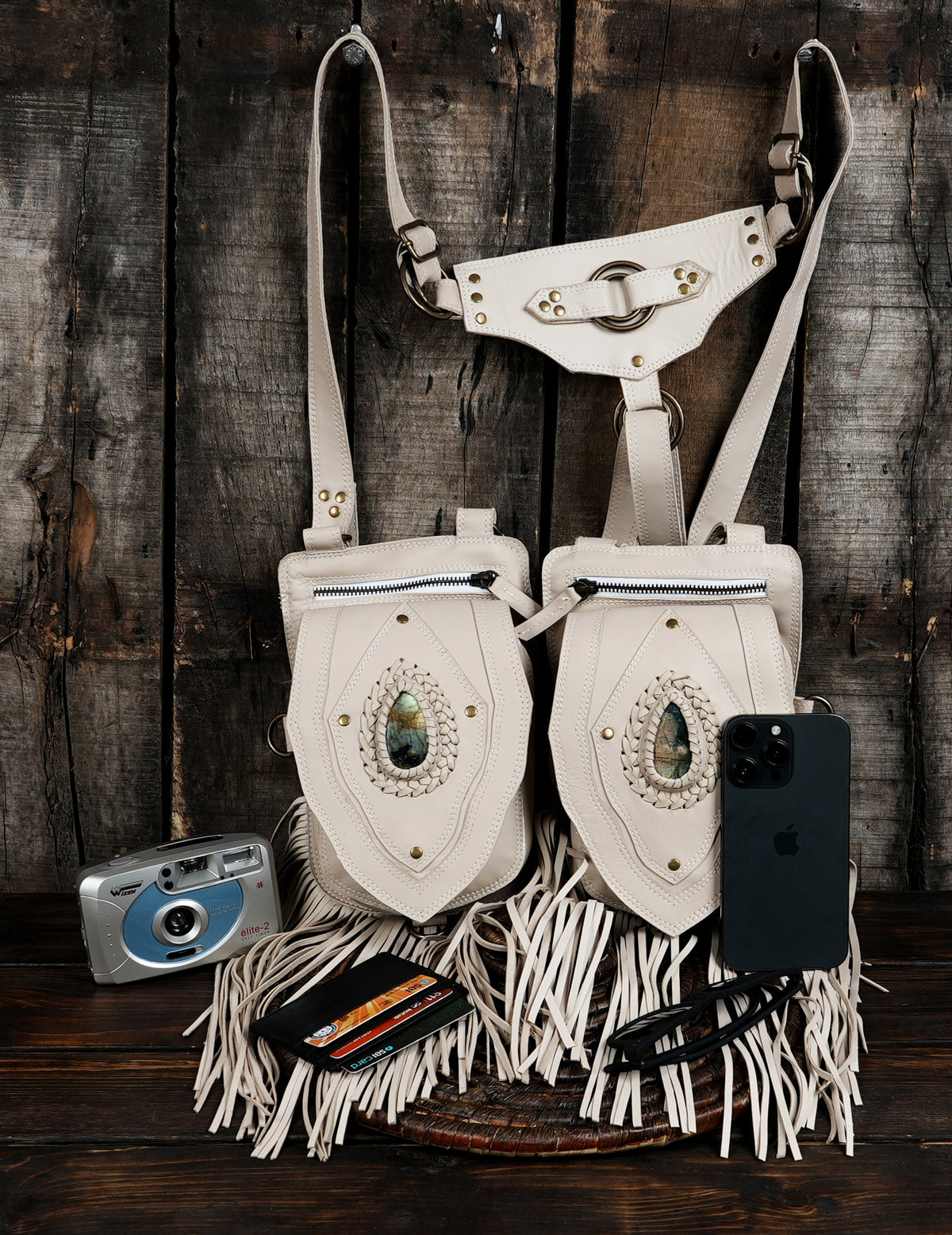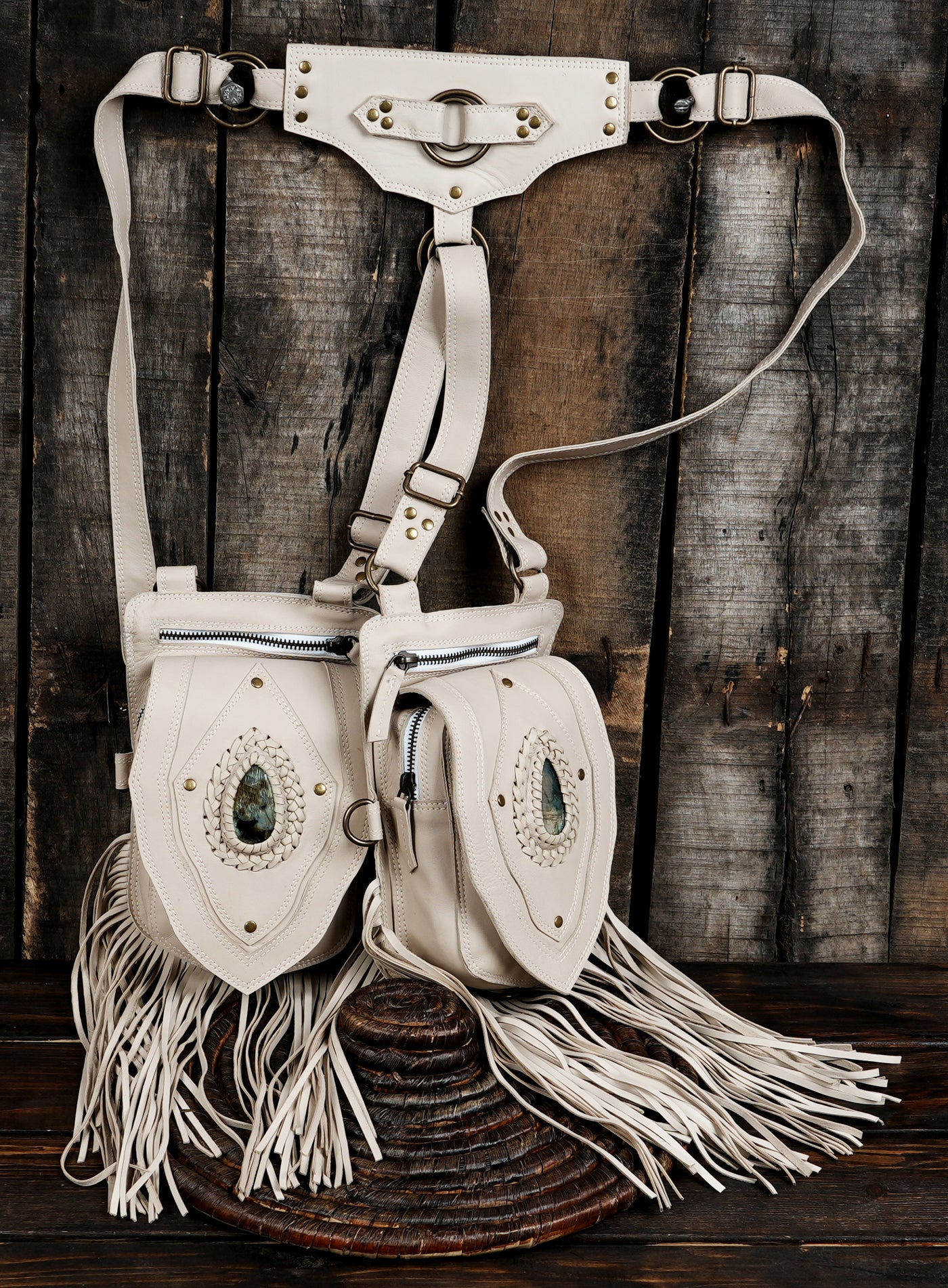 Handmade Leather Holster with Gemstone (LT-AB-HLS-6116) - White / Free Size