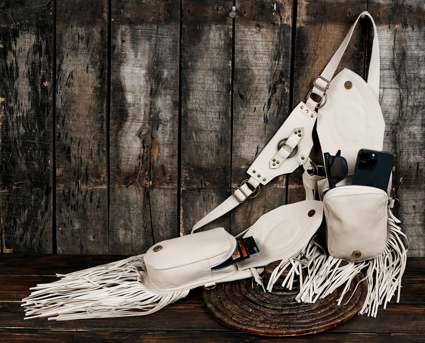 Long fringe detail for festival / boho styling — stands out in photos and on the street.