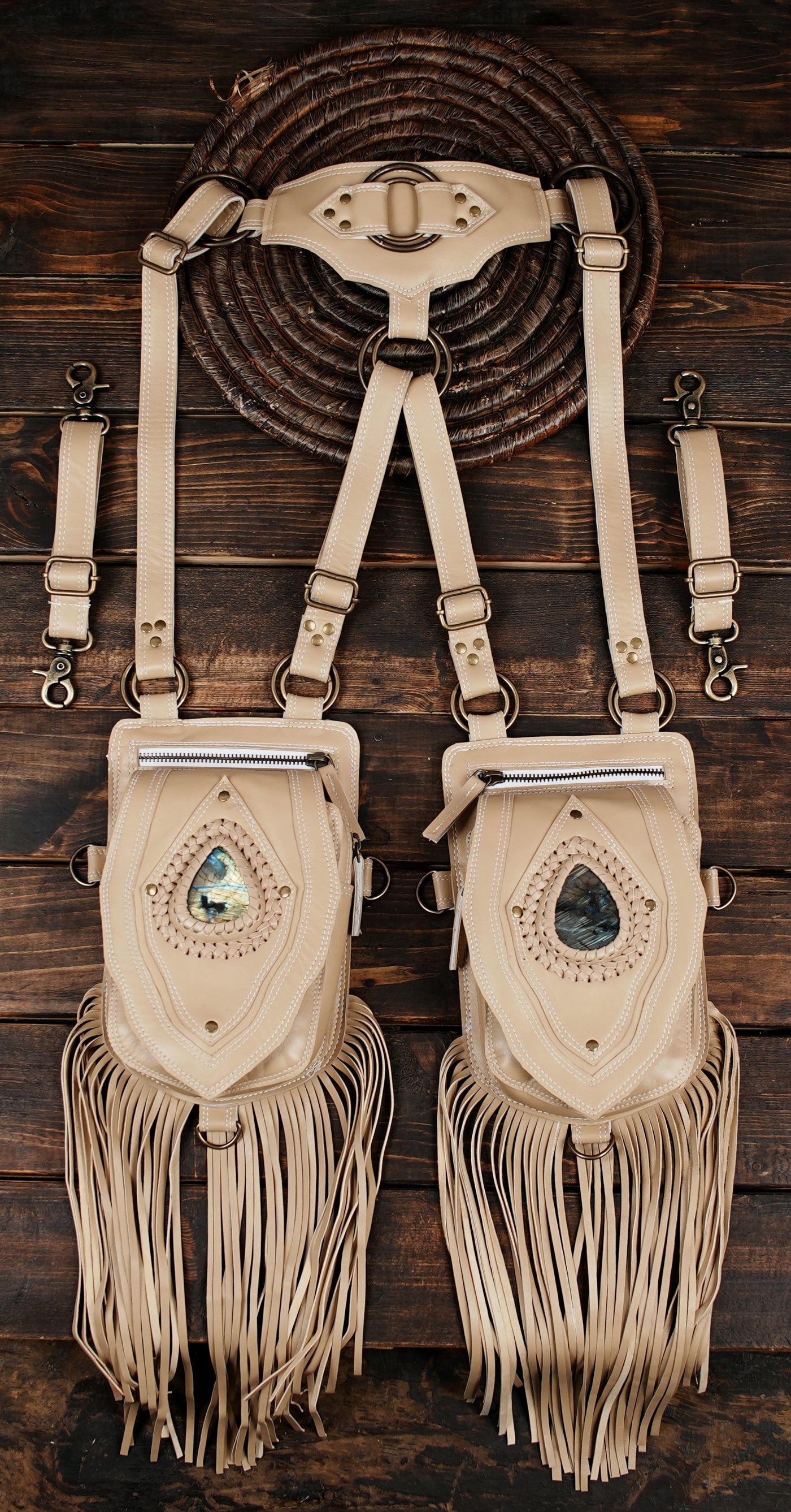 Handcrafted genuine leather holster with decorative stone inlay — unique boho look.
