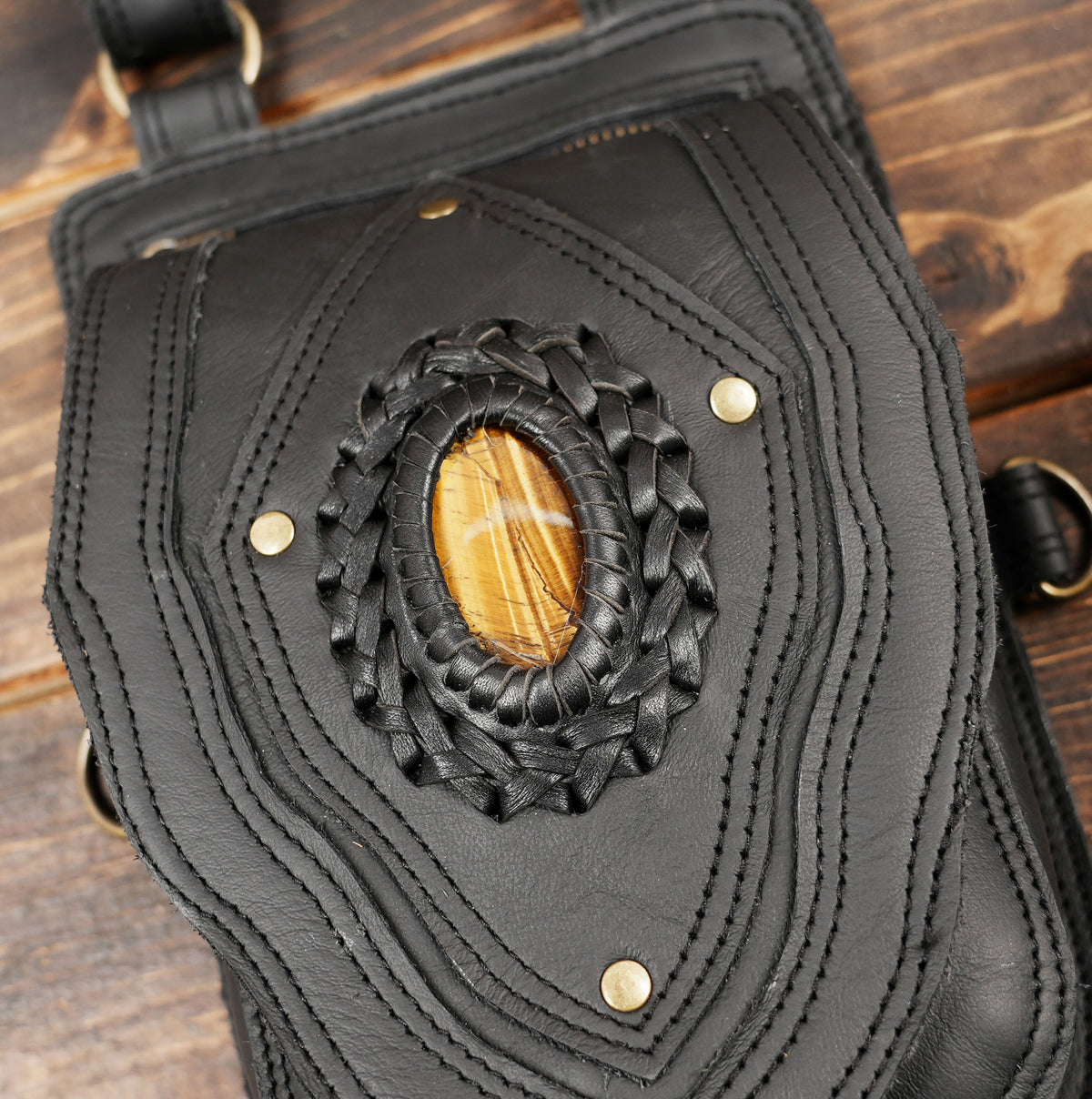 Decorative Stone & Studs – Embellished with gemstone and metal studs, giving it a bold tribal and steampunk vibe.