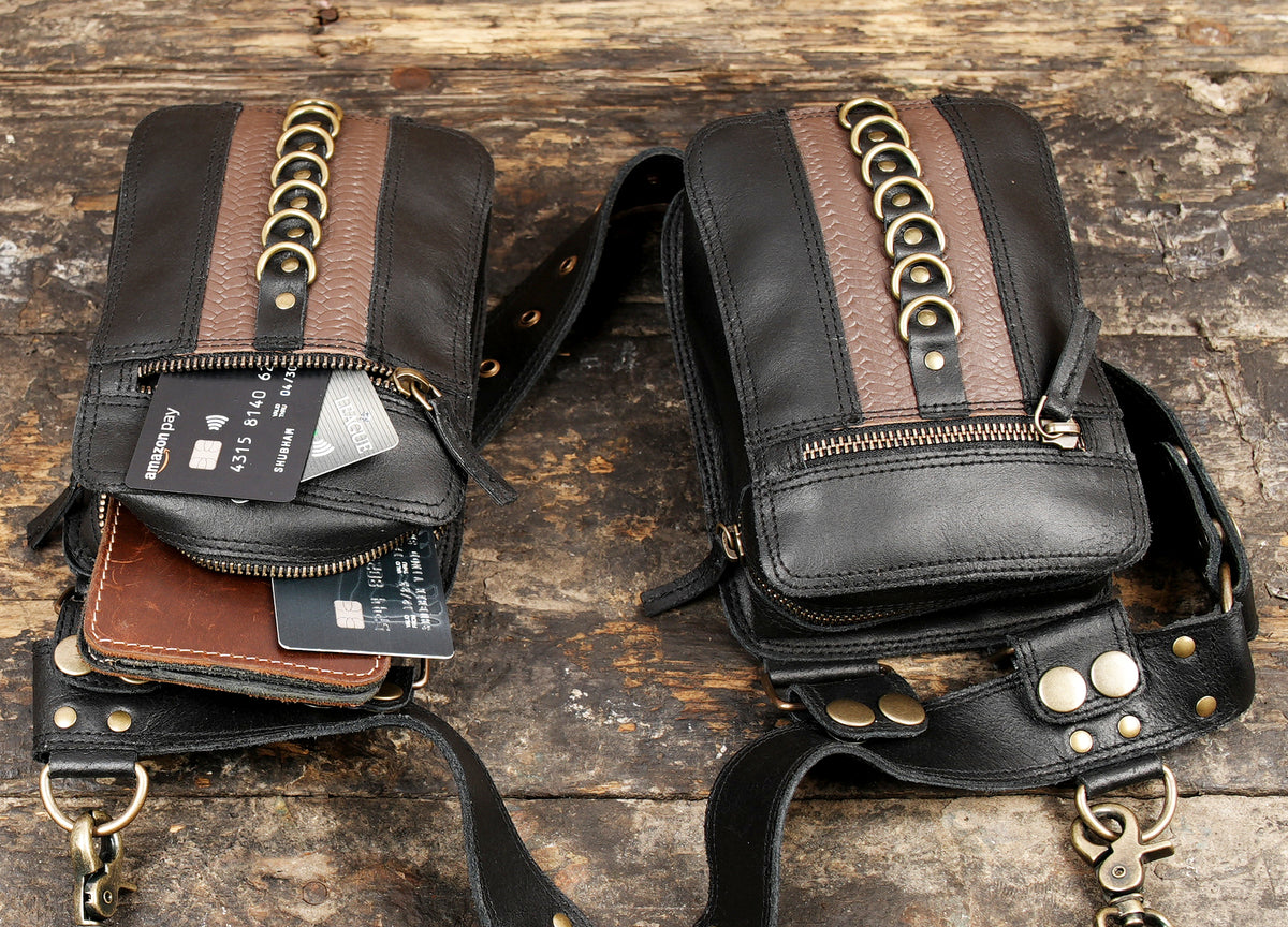 Crafted from durable genuine leather, this dual-pouch holster features adjustable shoulder and waist straps for a secure, customizable fit. The twin zipper pockets provide easy storage for essentials, while the brass rivet accents add a rugged, stylish touch. Designed for festivals, travel, biking, and hands-free convenience, this unisex leather holster offers both functionality and standout style in one compact design.