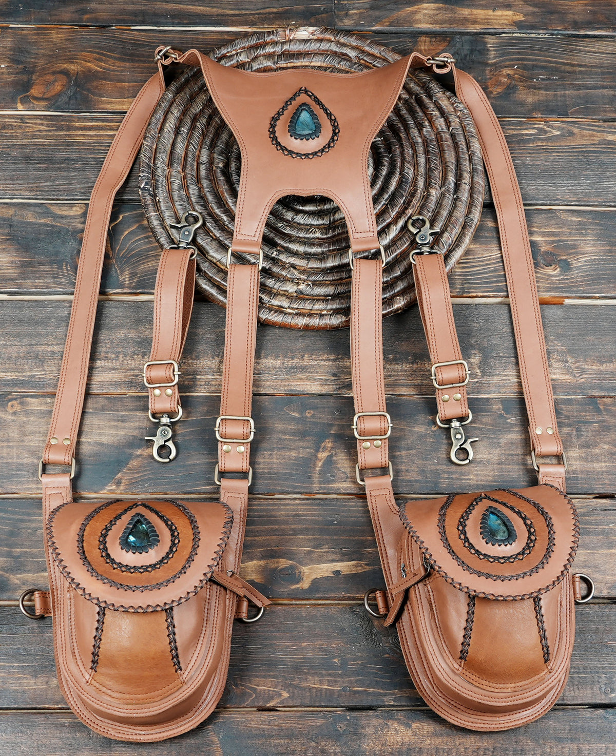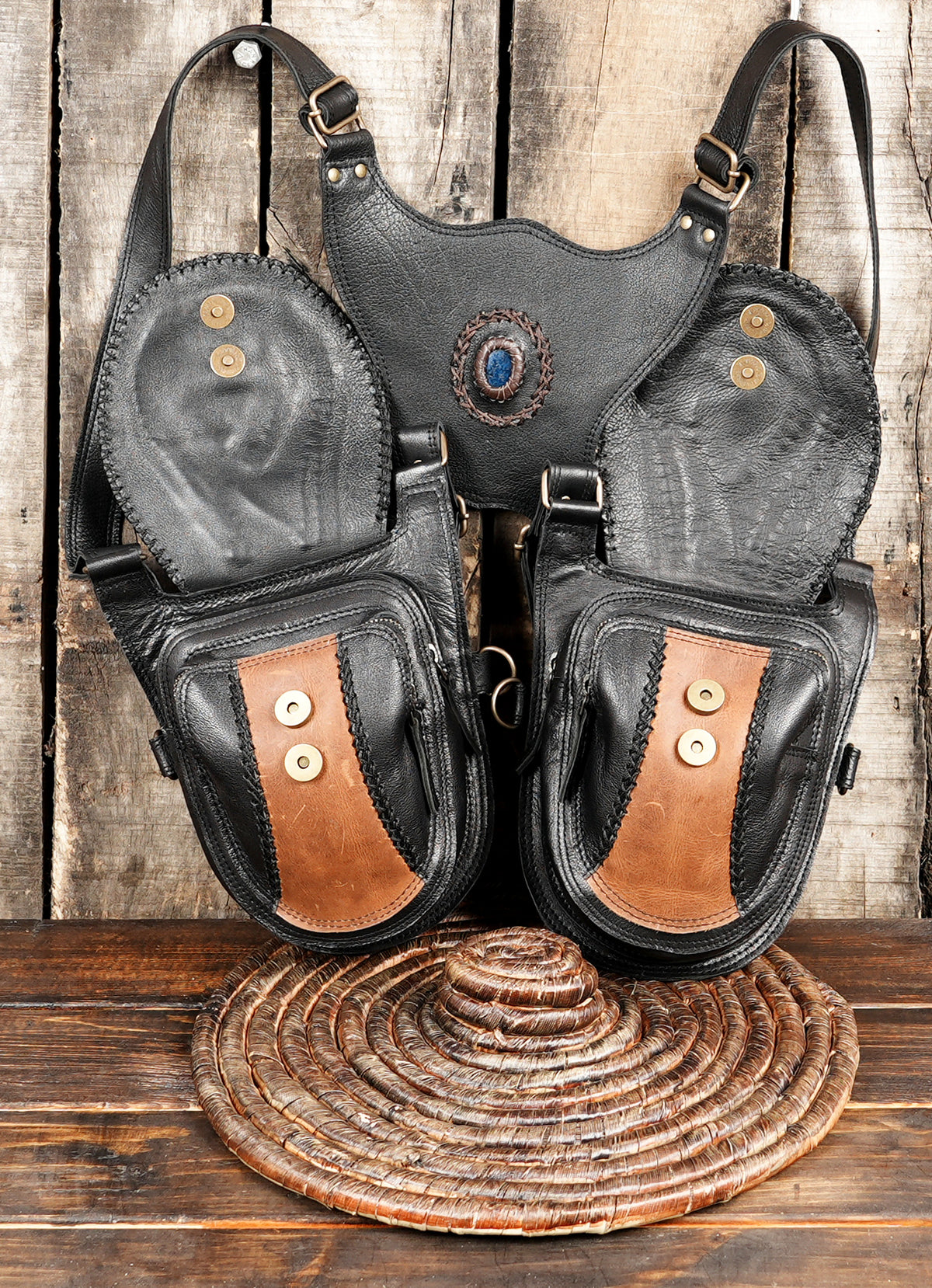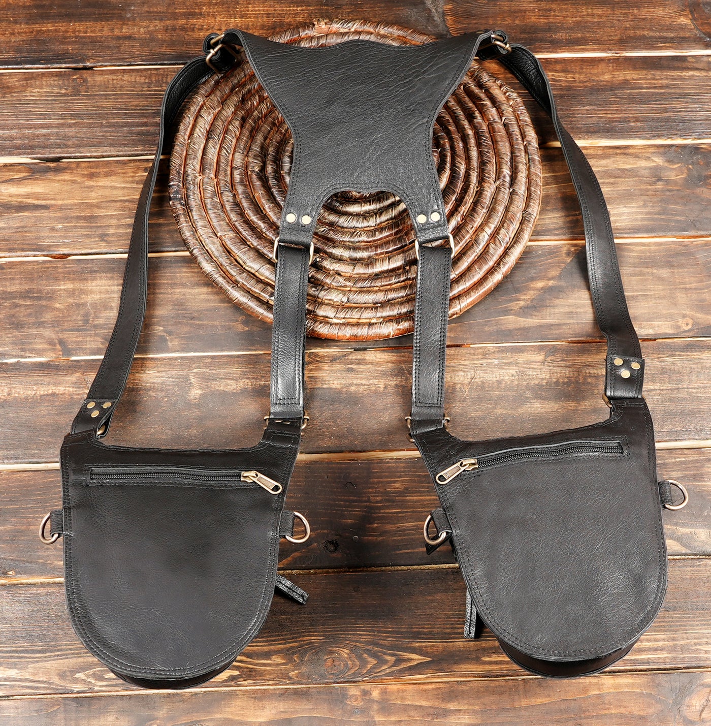 Premium Leather Shoulder Holster with Adjustable Straps || Stylish Leather Holster Ring for Travel and Festivals (LT/AB/HLS/6082) - Black / Free Sized / Antic Brass