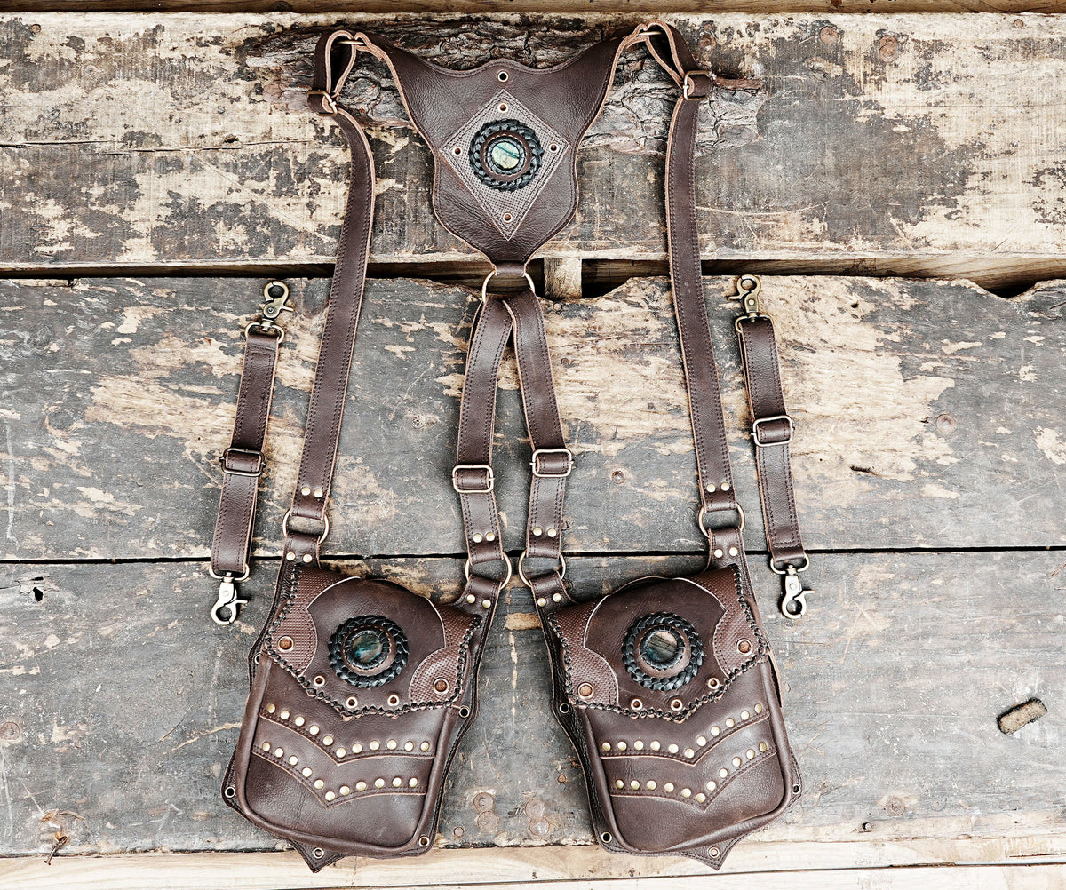 Premium Steampunk Dual Pouch Leather Holster Harness || Adjustable Leather Harness Holster for Festival and Cosplay Wear (LT/AB/HLS/6063)