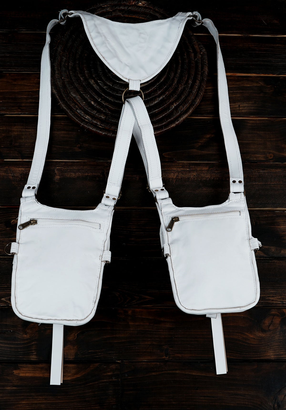 White Handmade Leather Holster with Turquoise Accent || Boho Tribal White Leather Holster Bag (LT-AB-HLS-6043) - White / Free Sized / Antic Brass