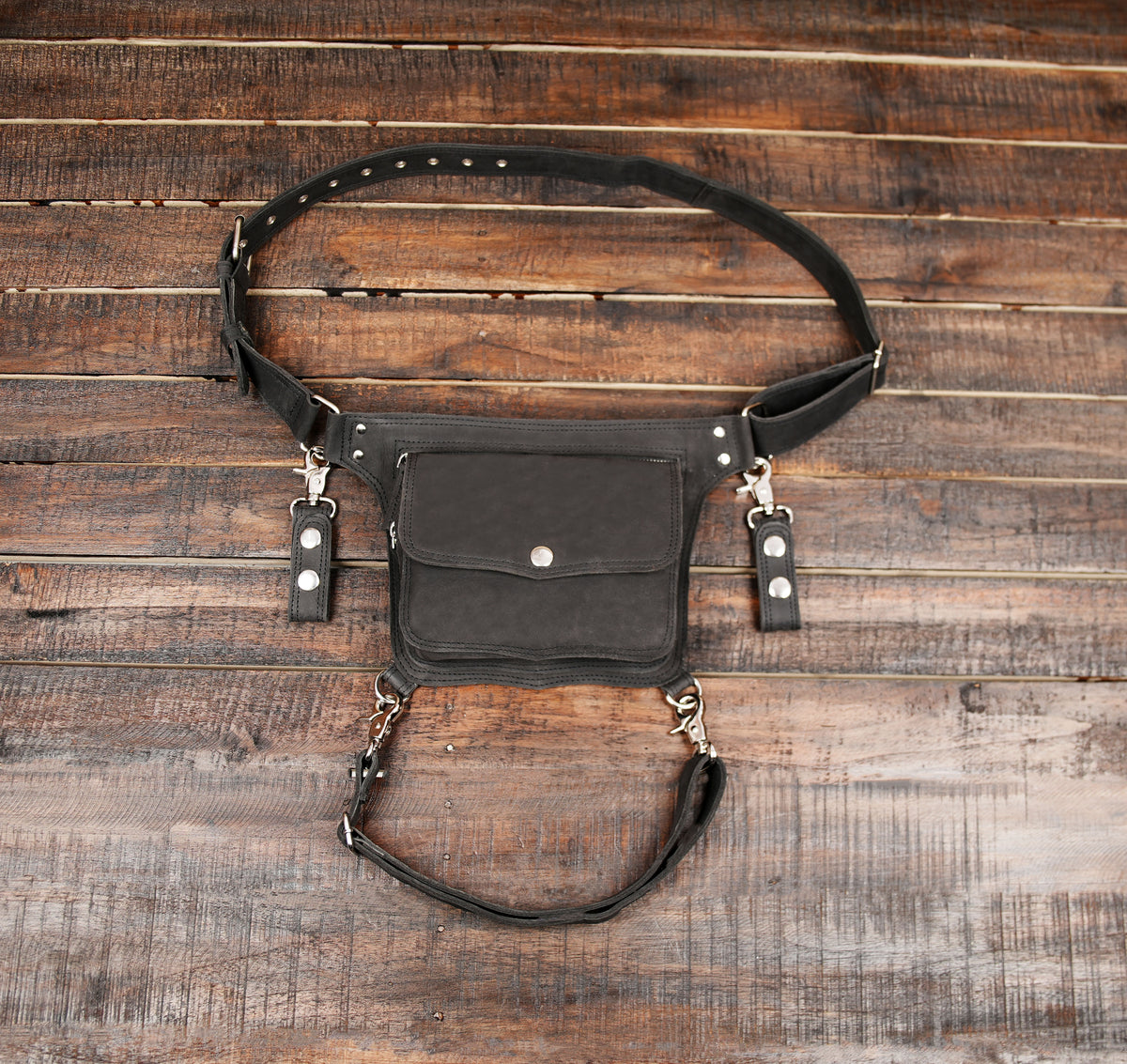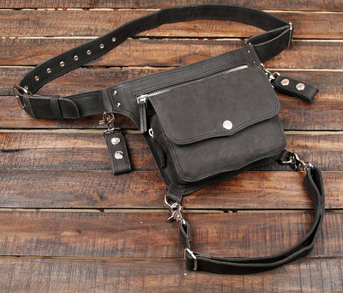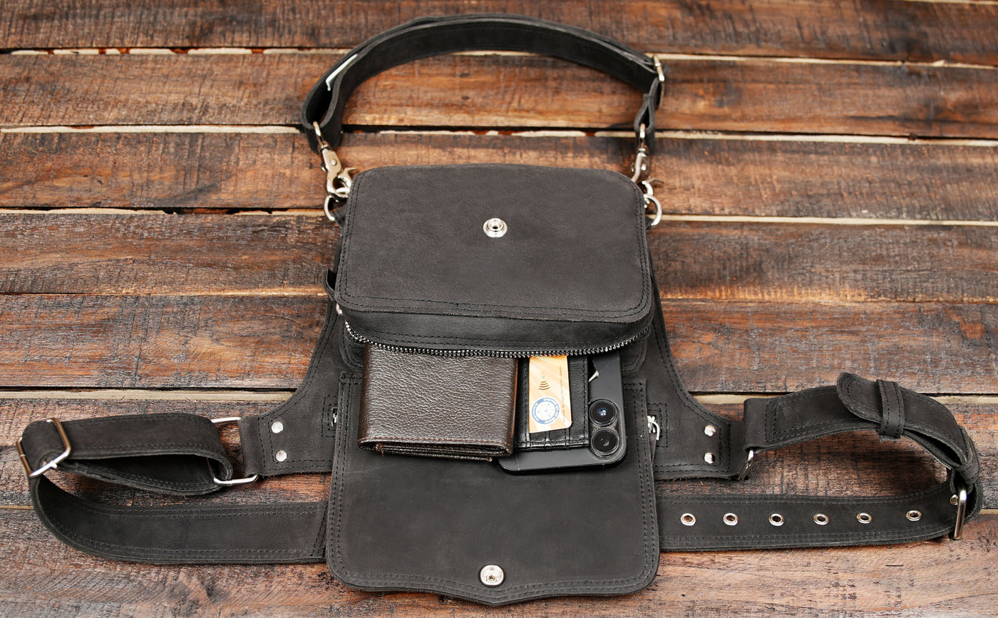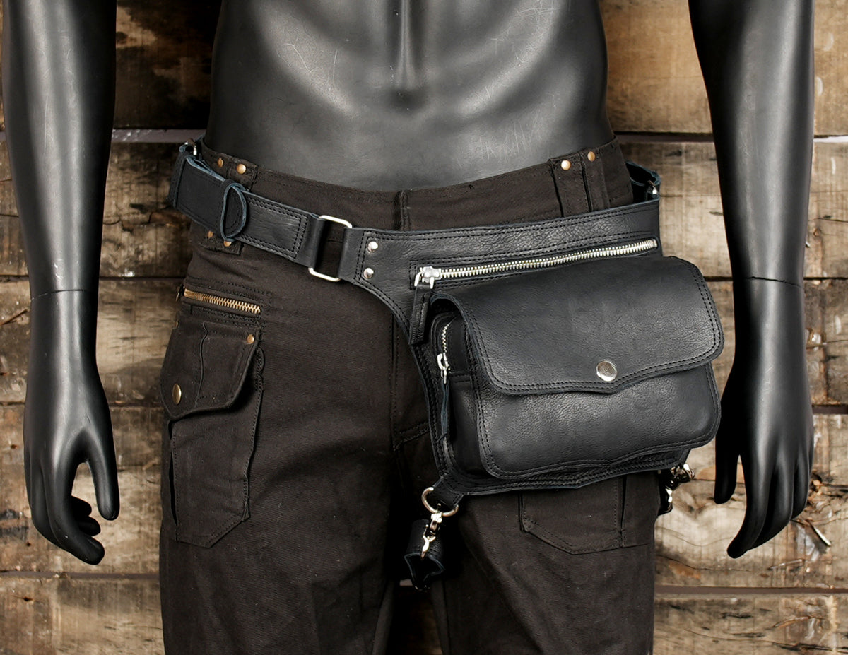 Black Leather Thigh Belt Bag (LT/NS/WBTS/6014)