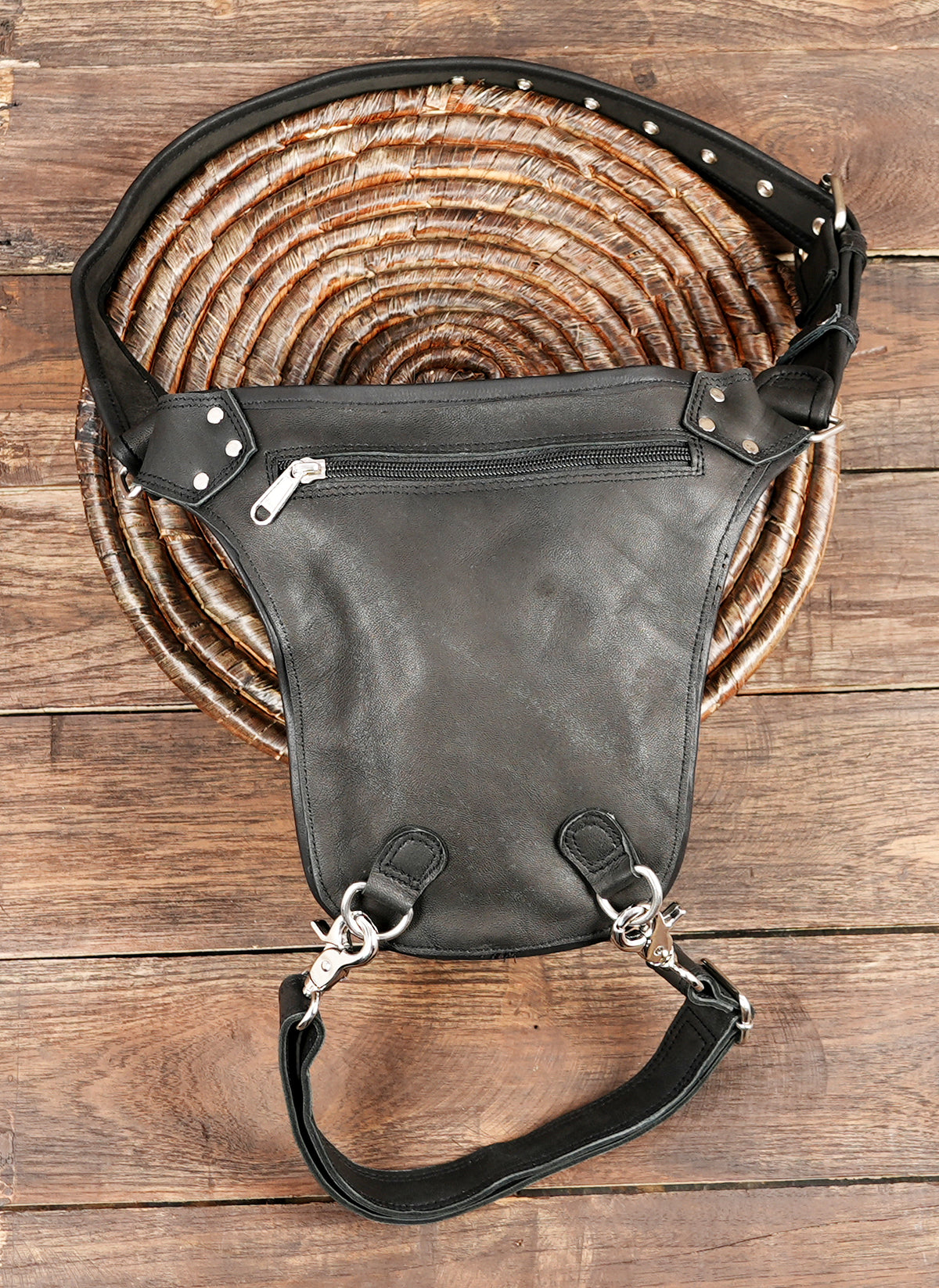 Handmade Leather Crossbody Thigh Belt (LT-NS-WBTS-6011) - Black / S - 28 TO 32