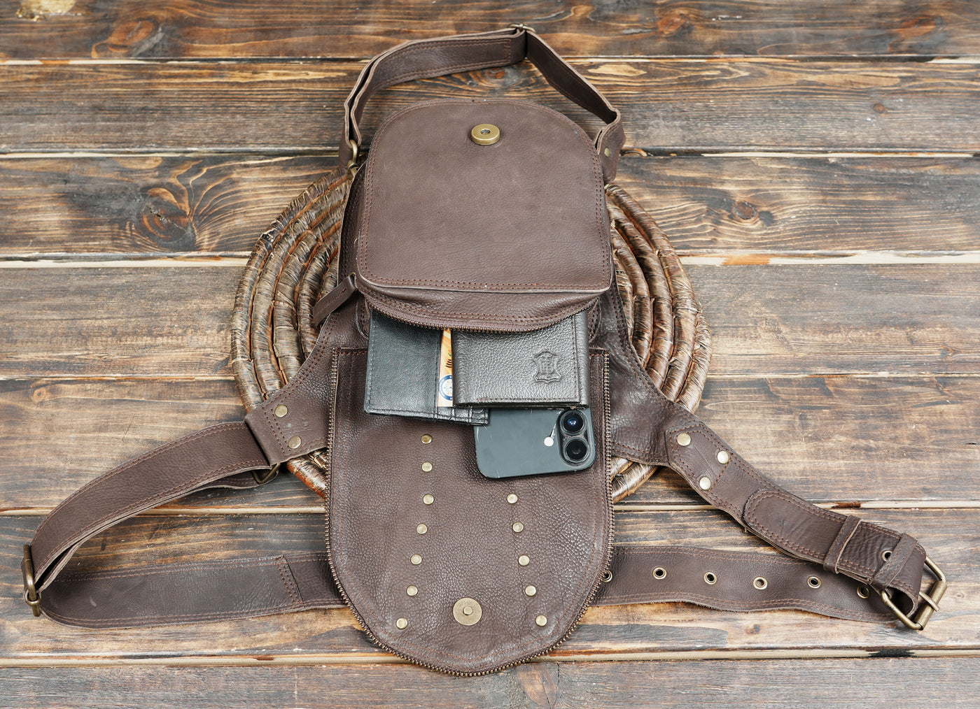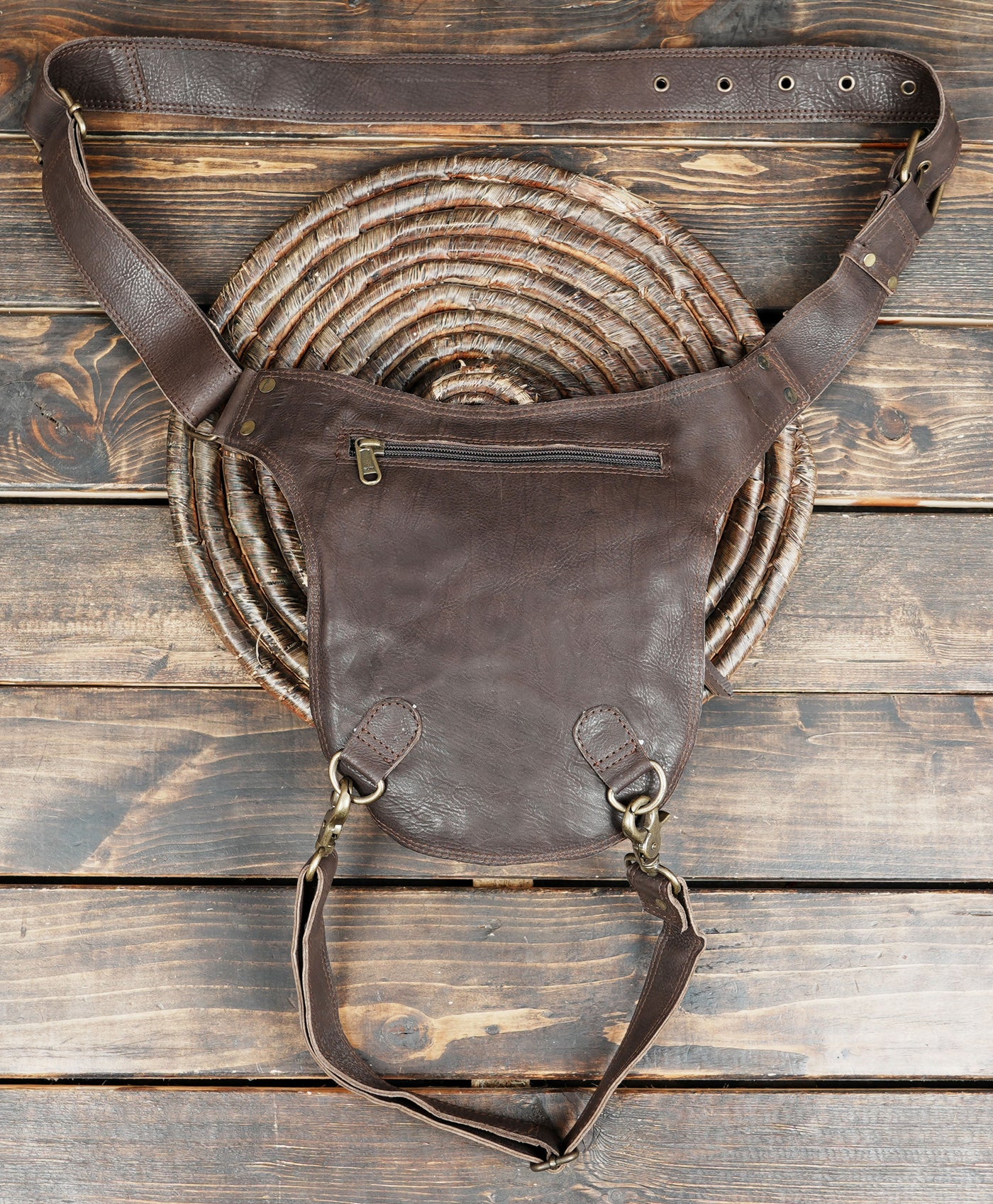 Handmade Leather Waist & Thigh Belt Bag | Festival Hip Pouch | Steampunk Holster | Unisex Utility Belt (LT/AB/WBTS/6042) - Dark Brown / S = 28 to 32
