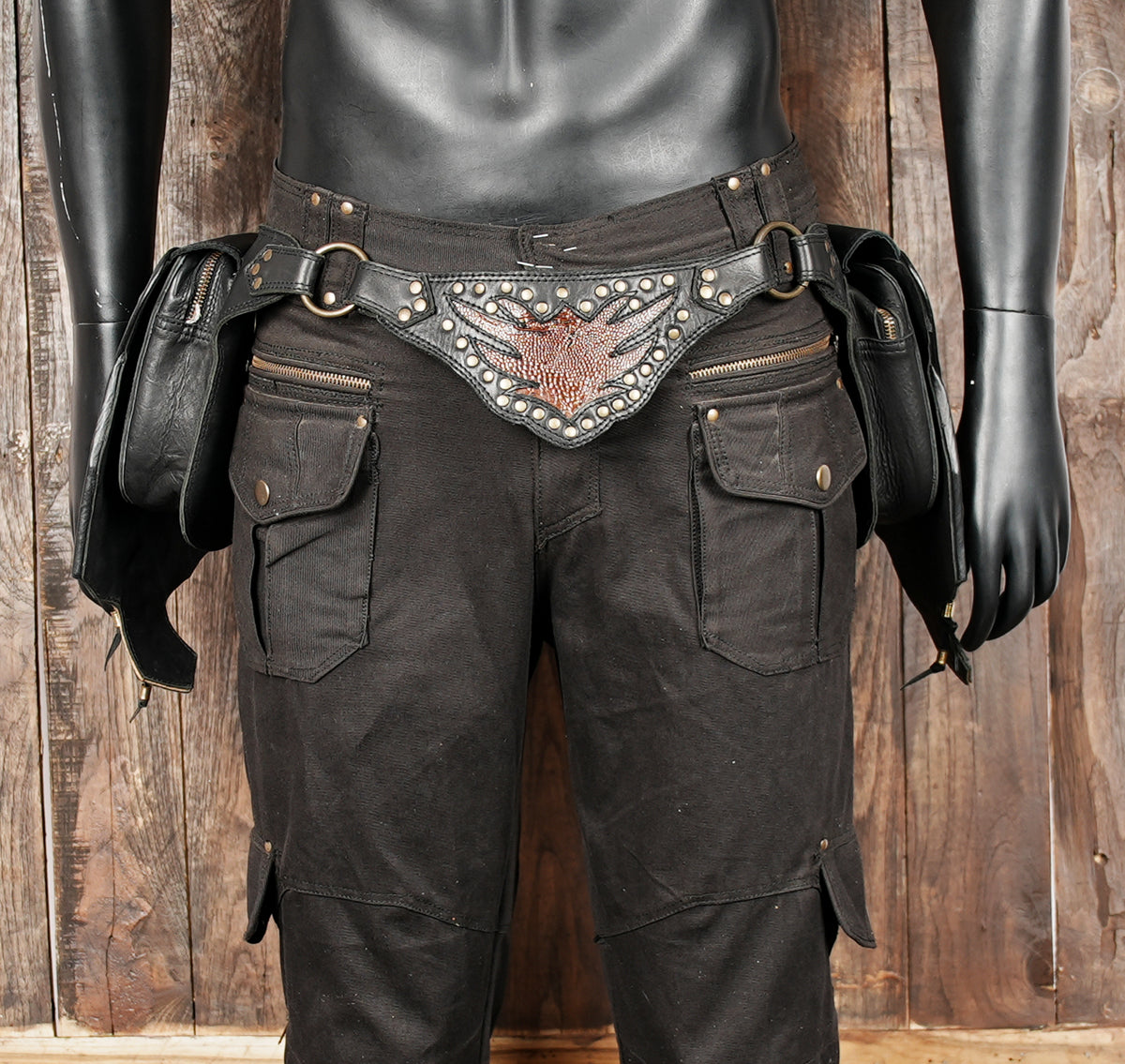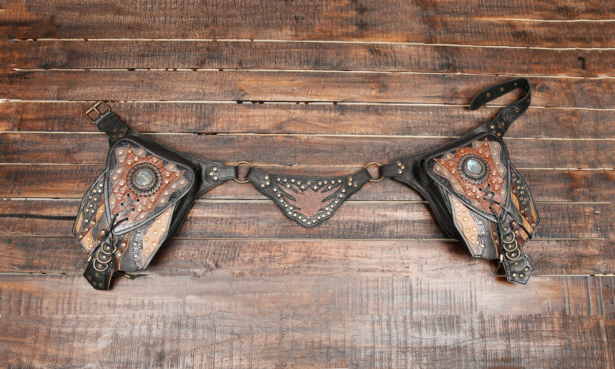 handmade Leather Waits Belt with Gemstone Dual (LT-AB-WB-6028) - Black / S – 28 TO 32
