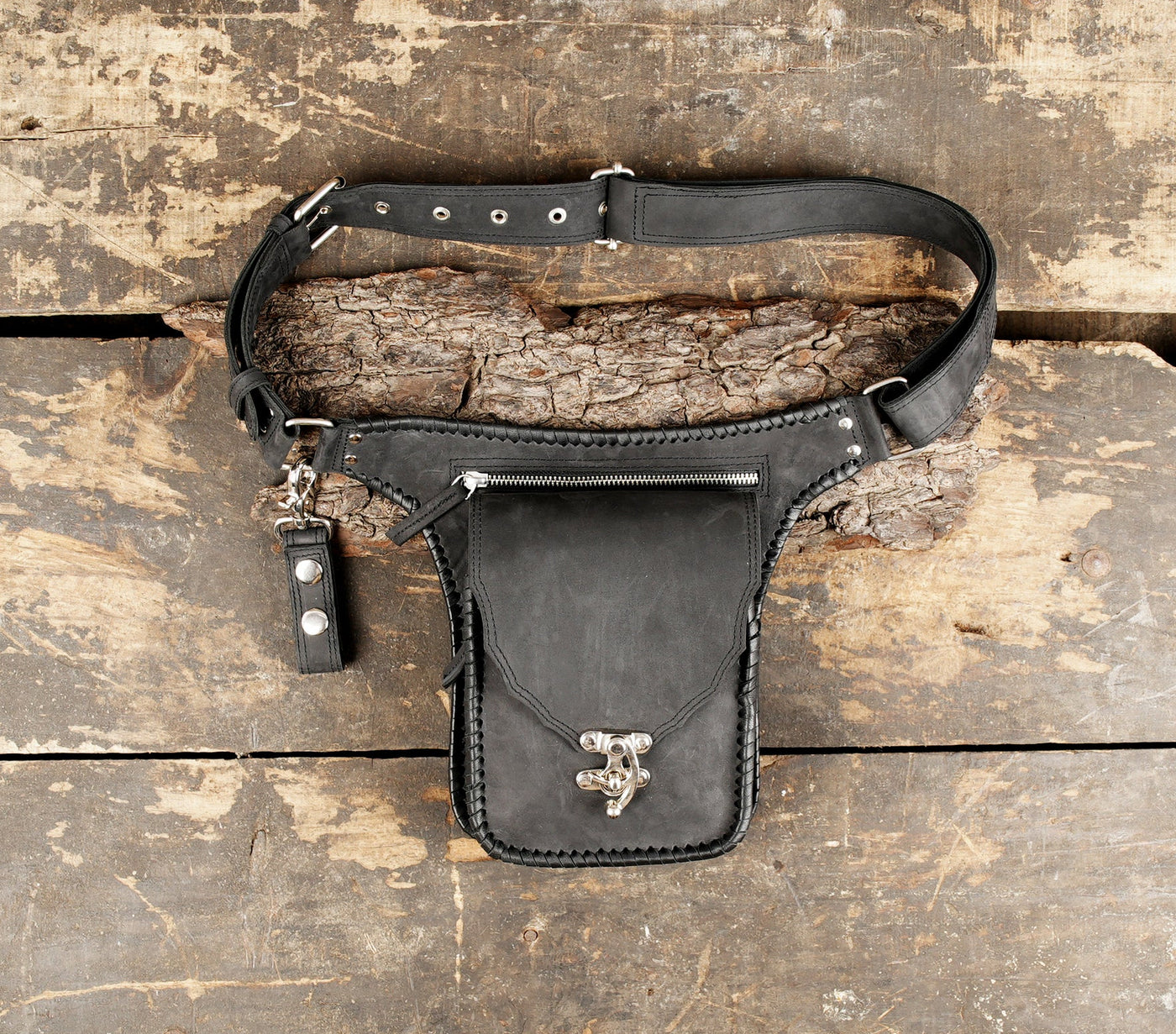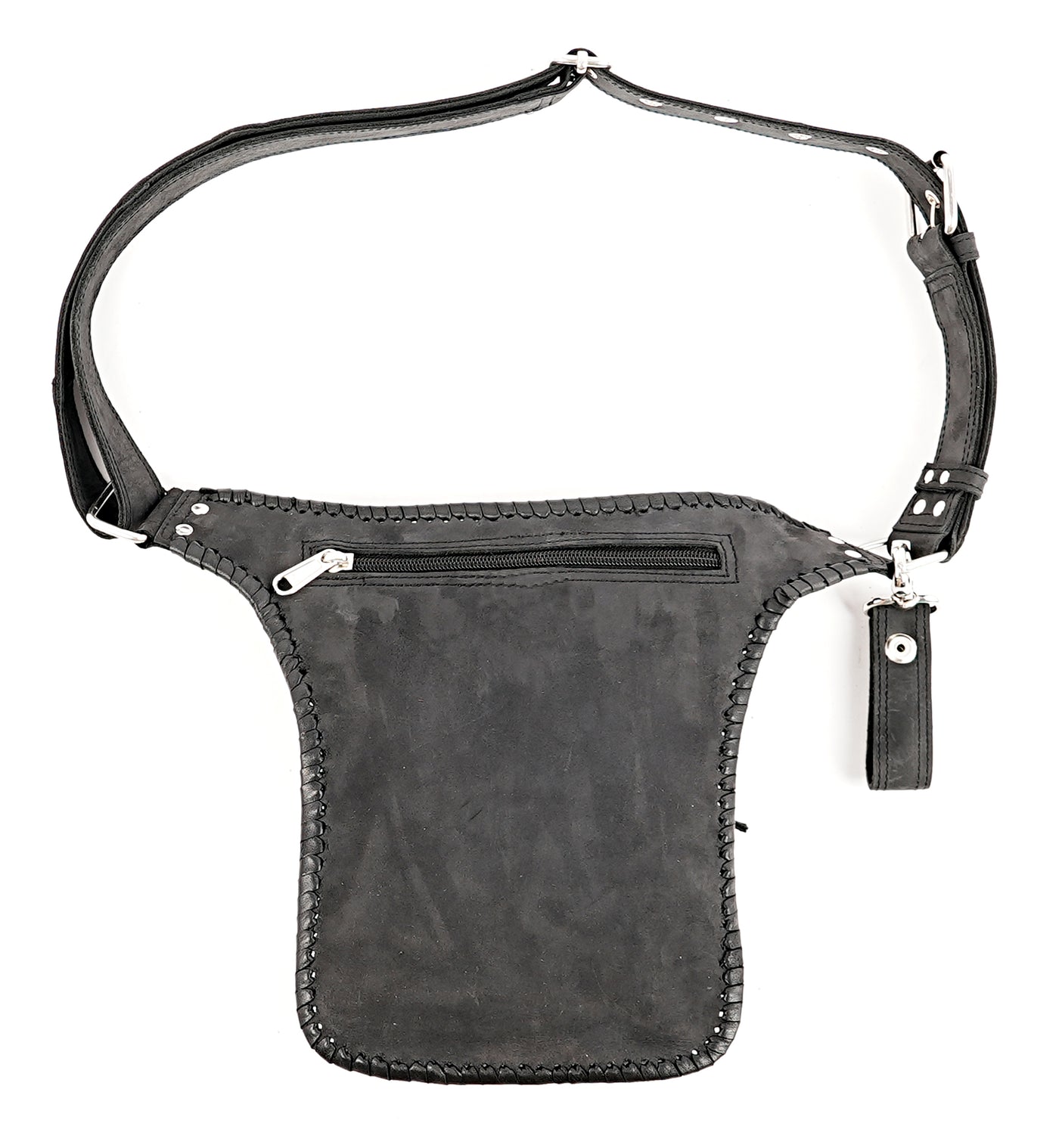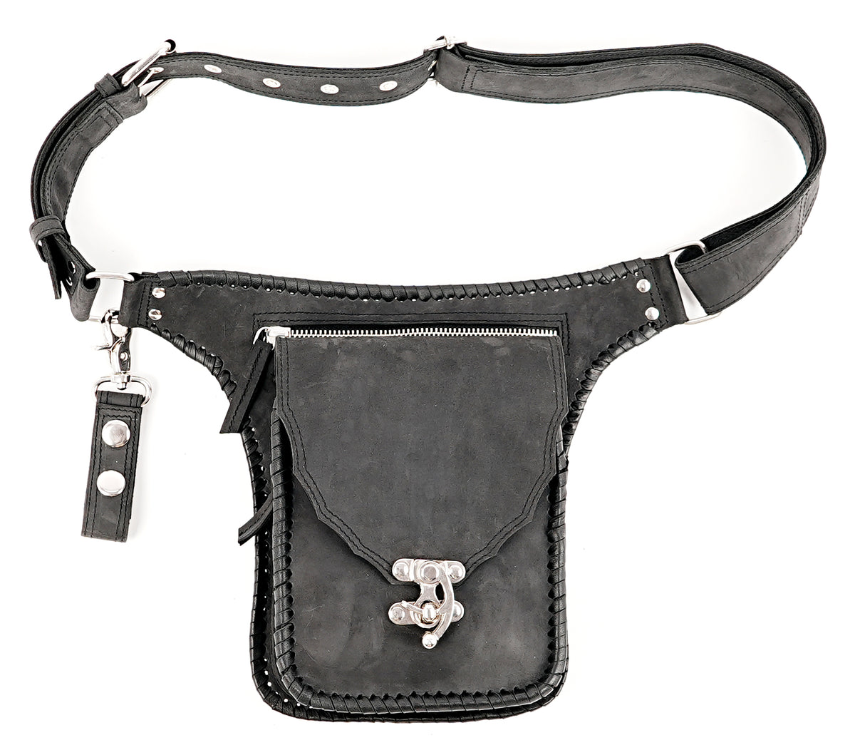Handmade Genuine Leather Waist Belt with Zipper Pouch || Genuine Leather Hip Belt Bag with Front Zipper Pocket (LT/NS/WB/6017) - Black / S = 28 to 32 / Antic Brass