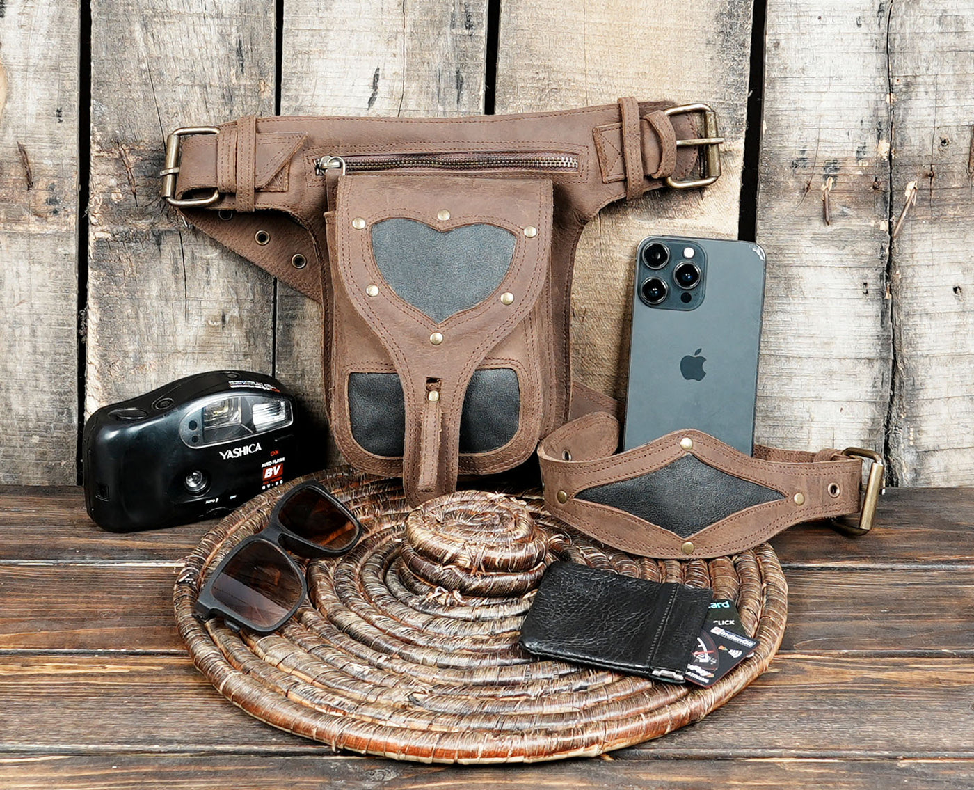 This handcrafted leather waist pouch is designed for hands-free convenience at festivals, concerts, and outdoor adventures. Each belt is made by hand, giving it a unique artisan touch. It’s lightweight and practical, which makes it a good choice for travel, cycling, hiking, or everyday streetwear. The premium genuine leather offers durability and long-lasting wear. The spacious pouch comes with both a zipper and a flap closure to keep your essentials secure and easy to access.