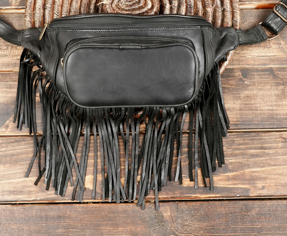 Handcrafted Genuine Leather Waist Belt with Multi Zipper Pockets || Unisex Leather Waist Bag with Fringe (LT-AB-WB-6042)