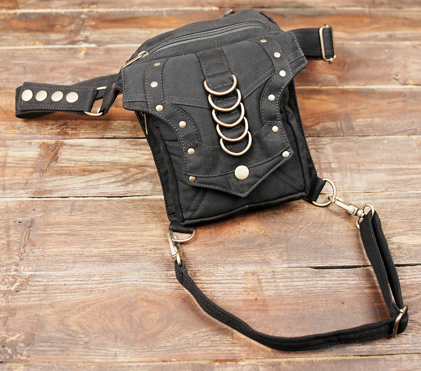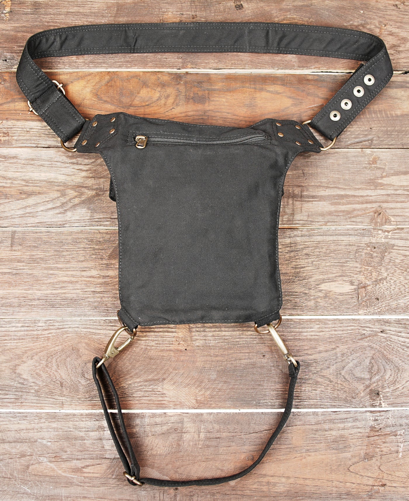 Adjustable Cotton Thigh Bag – Handmade Festival Belt (CTN-AB-WBTS-1013) - Black / S = 28 to 32