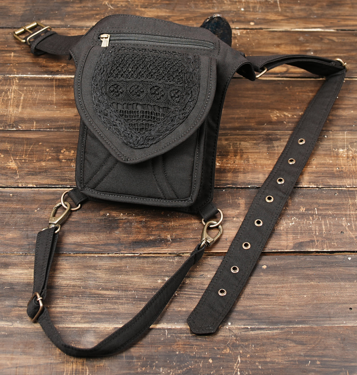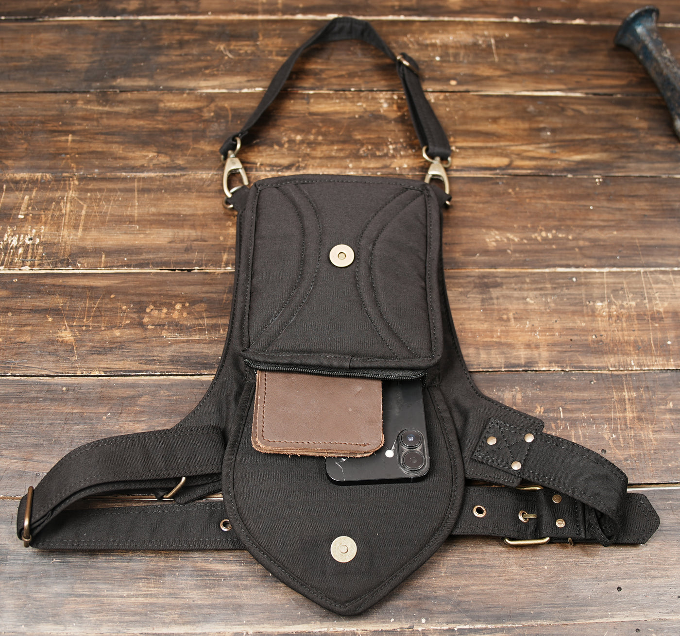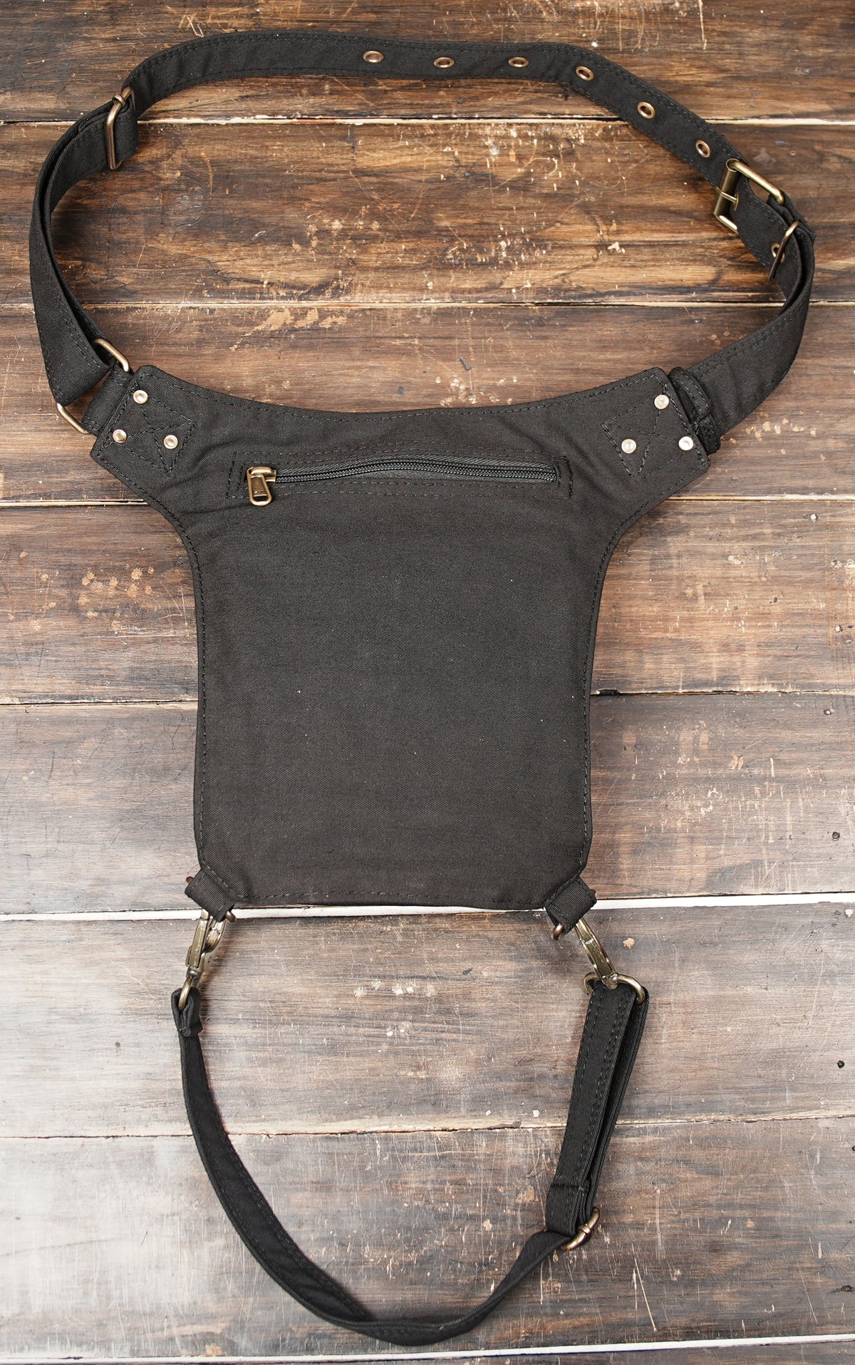 Black Cotton Leg Bag – Waist and Thigh Utility Belt (CTN-AB-WBTS-1012) - Black / S = 28 to 32