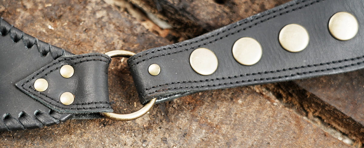 Black Leather Holster Harness with Dual Pouches || Steampunk Style Leather Holster with Braided Edging (LT/AB/HLS/6117) - Black / Free Sized / Antic Brass