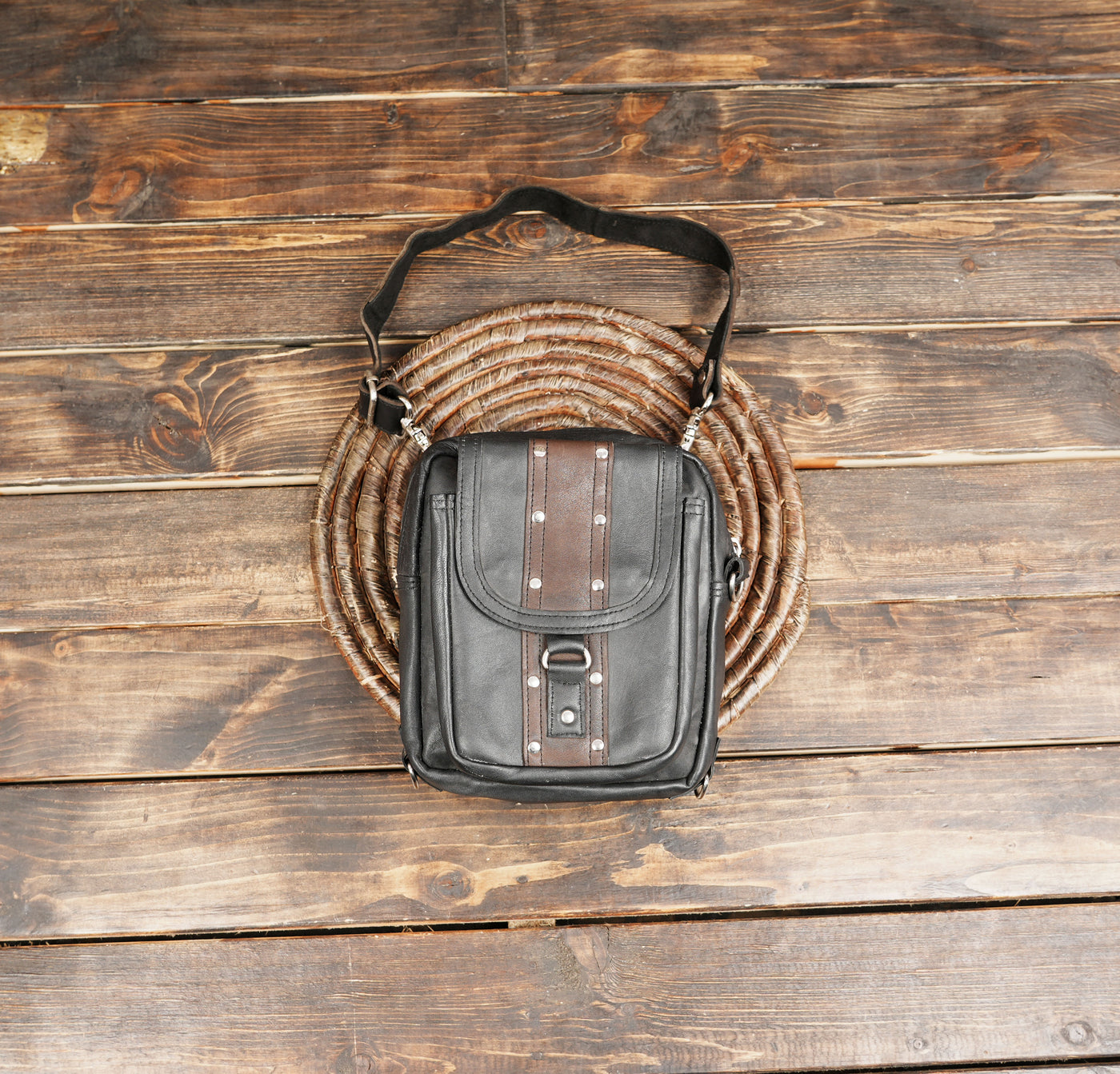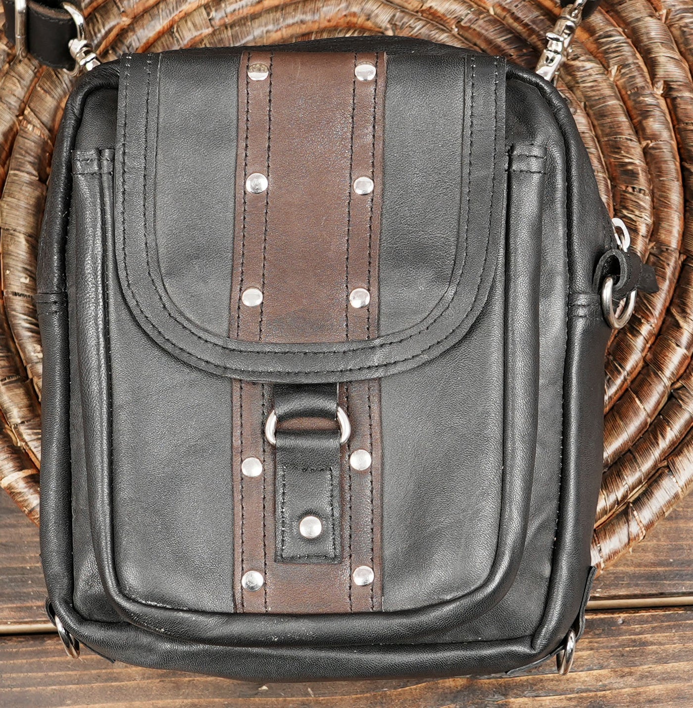 Black Leather Waist Belt Bag | Steampunk Hip Pouch | Unisex Festival Holster | Crossbody Utility Bag(LT/NS/WB/6047) - Black / S = 28 to 32 / Antin Brass
