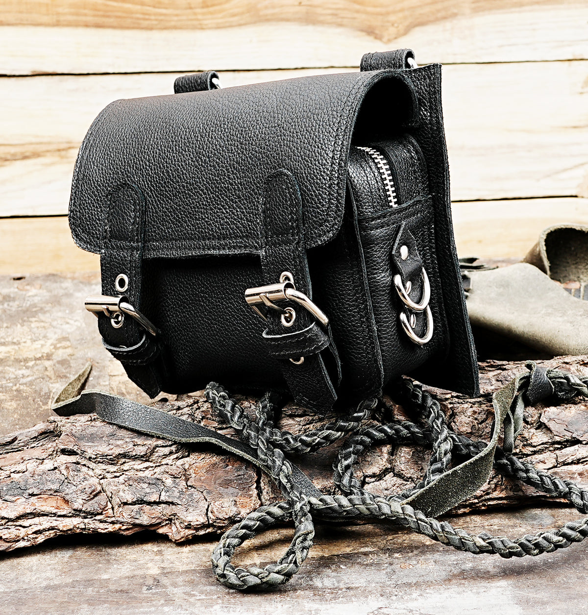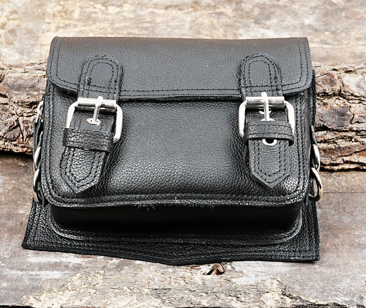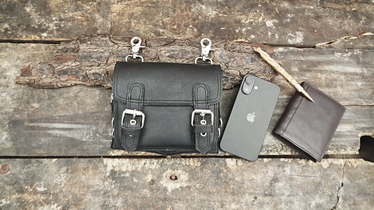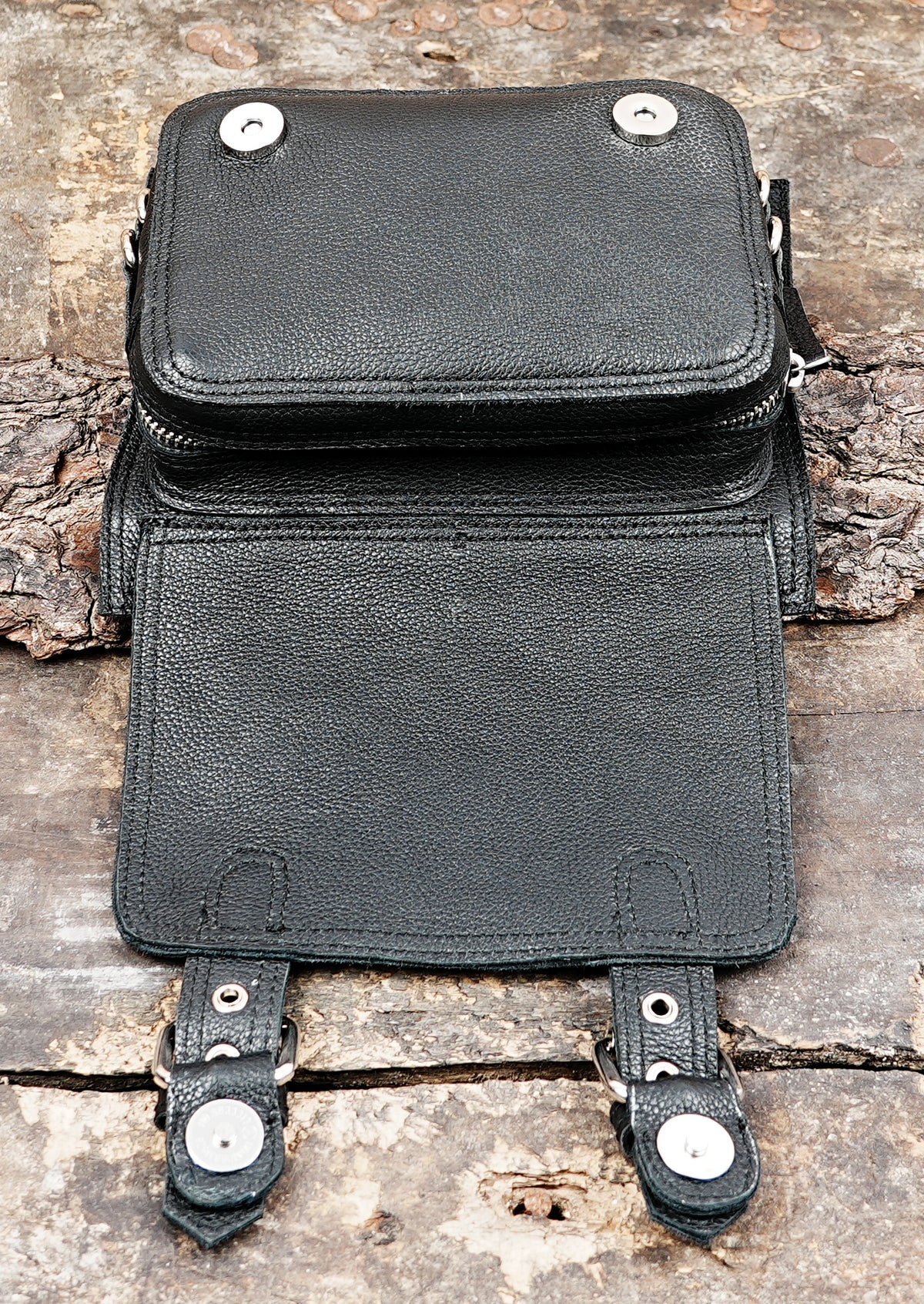 Black Leather Waist Belt Pouch with Buckle Straps || Leather Waist Pouch for Hands-Free Carry (LT/NS/WB/6006) - Black / Free Sized / Nickle Silver