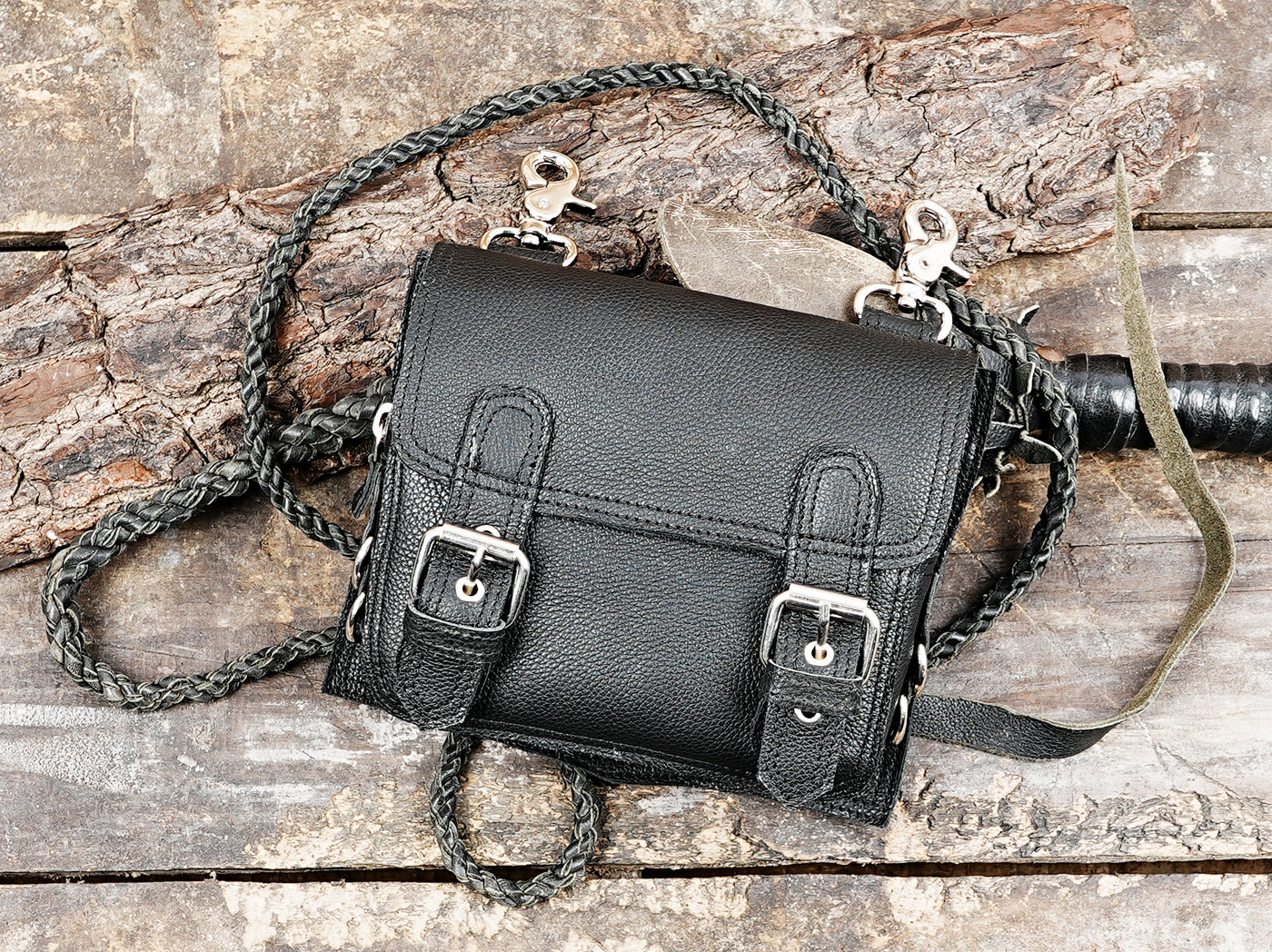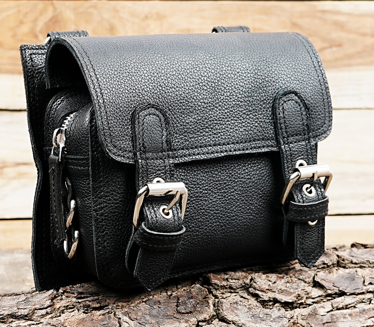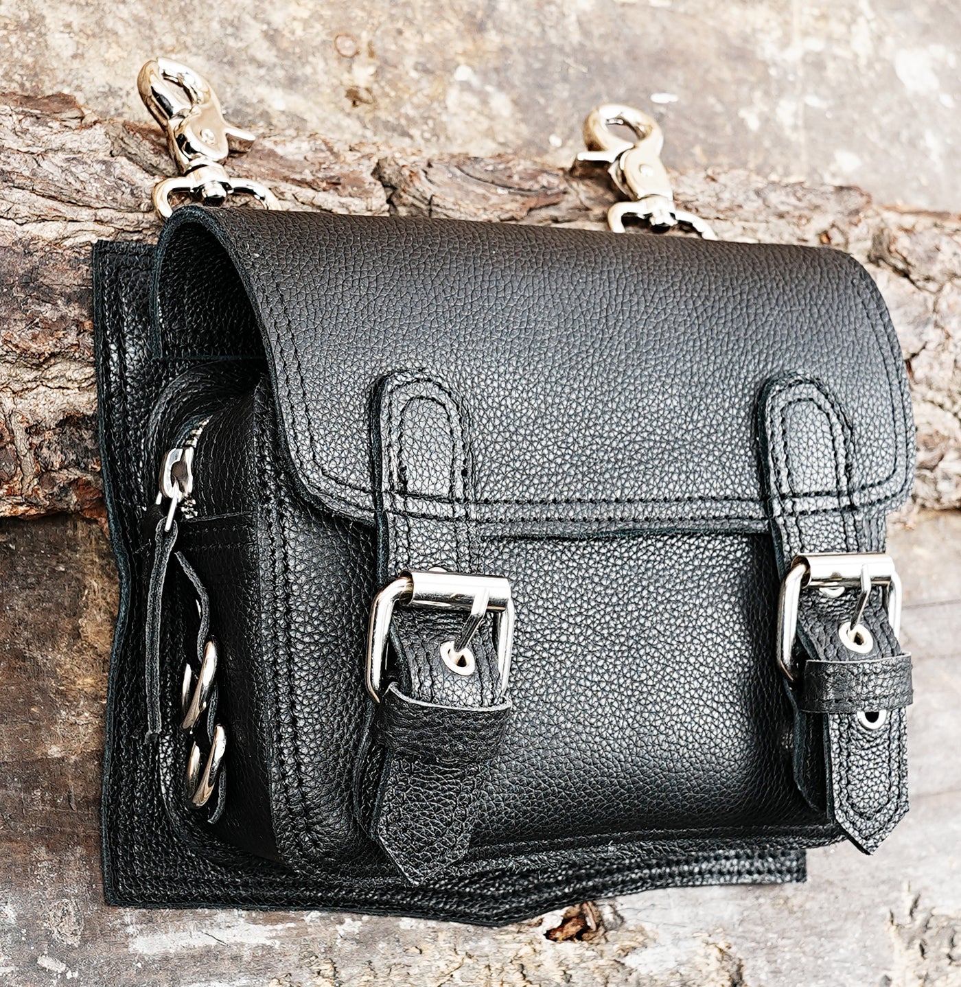Black Leather Waist Belt Pouch with Buckle Straps || Leather Waist Pouch for Hands-Free Carry (LT/NS/WB/6006) - Black / Free Sized / Nickle Silver