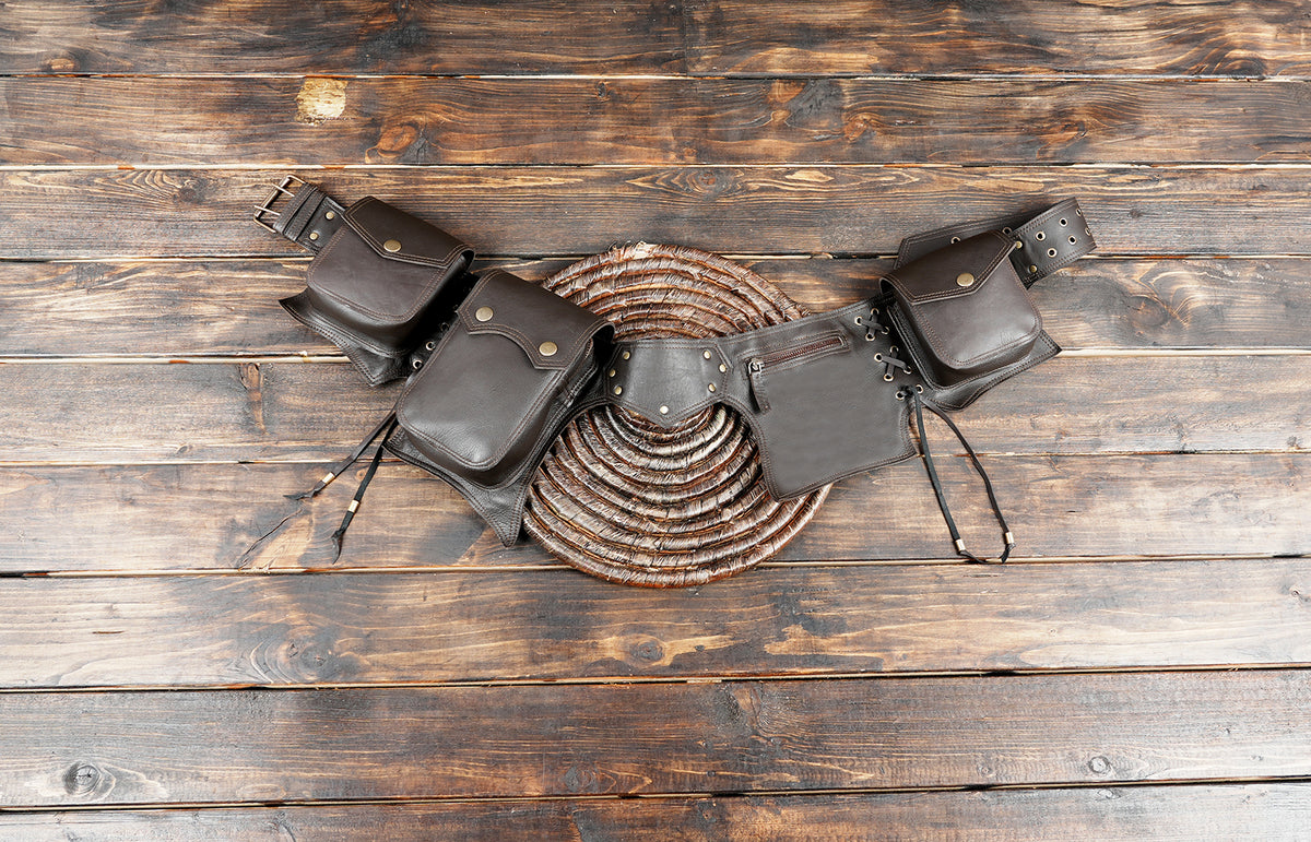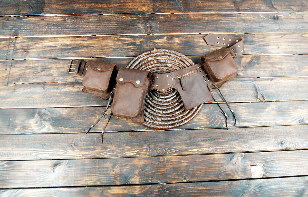 Handmade Multi-Pocket Leather Waist Belt for Festivals and Travel || Steampunk-Style Leather Utility Belt (LT-AB-WB-6008)