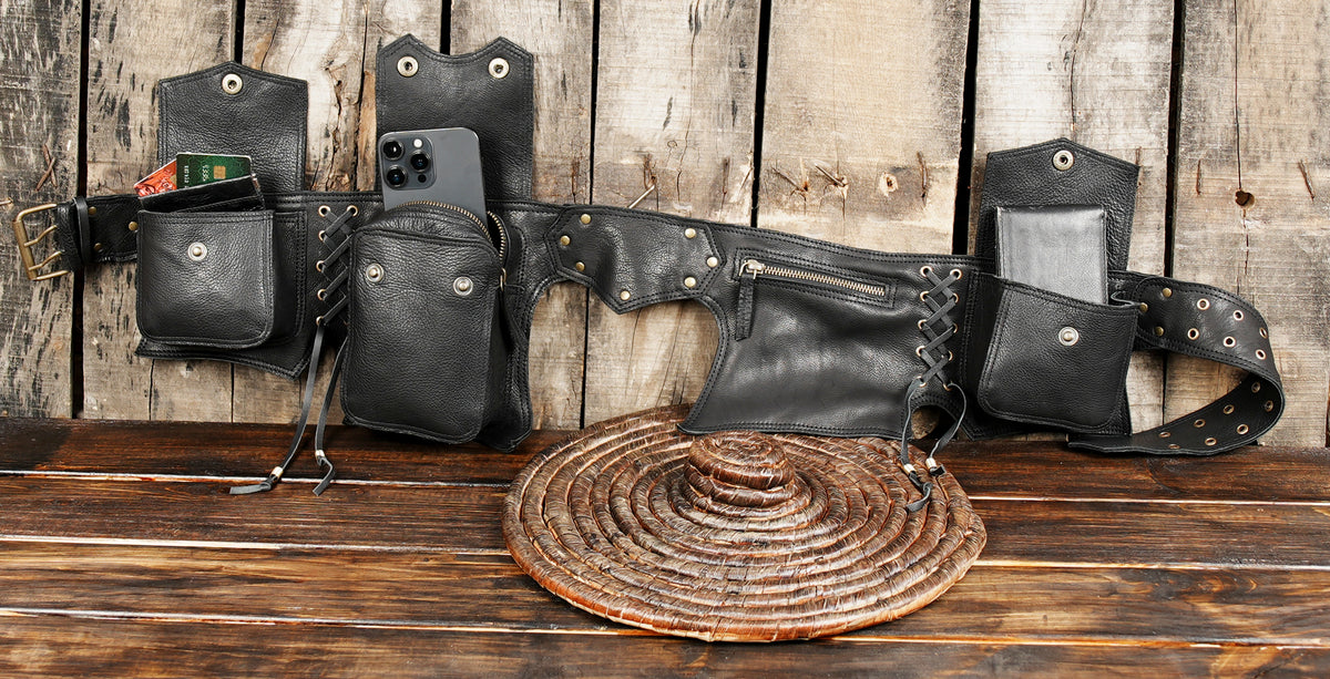 This multiple-pocket leather waist belt is crafted from premium genuine leather and blends style with practical use. It features several spacious pockets to keep your phone, wallet and keys organized, giving you hands-free convenience for everyday wear, travel or outdoor activities. The adjustable fit makes it comfortable to wear, while the stylish frill detailing adds a unique touch. Made from durable, high-quality leather, it’s a versatile accessory designed for long-lasting use and easy storage of your essentials.